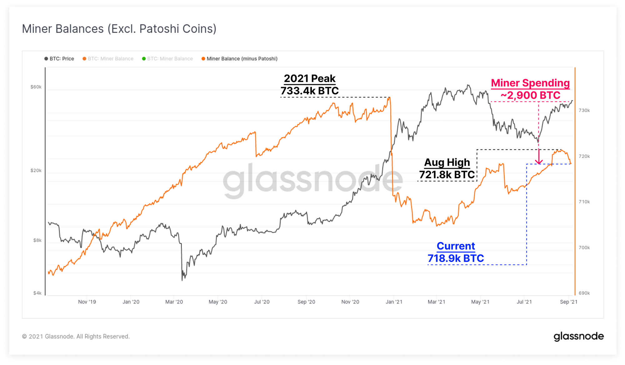 As BTC prices hover around the $50k range over the last few weeks, some of these miners have started spending a portion of their coin balances to lock in profits. This week, around 2,900 BTC have been spent from miner balances, equal to around $145M at a $50k BTC price.