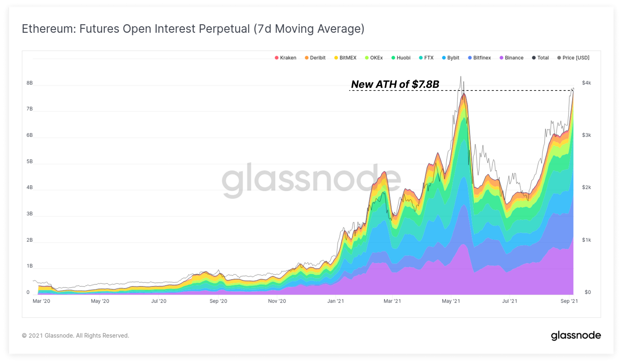 This effect is even more pronounced for Ethereum where perpetual futures open interest has surpassed the previous ATH, hitting $7.8B this week.