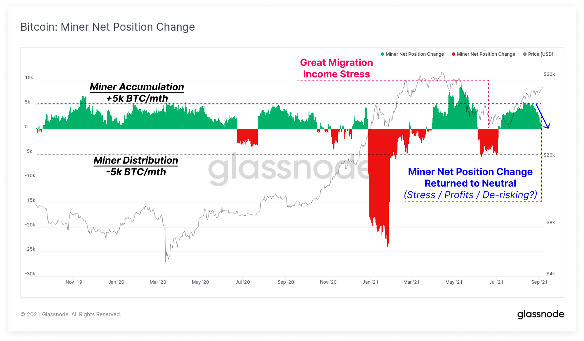 This may be a combination of affected miners in China obtaining fiat liquidity to cover costs, or operational miners taking profits and de-risking after the May sell-off. It is also likely that some of this revenue is earmarked for redeployment into facility expansion, and acquiring hardware from second-hand or new ASIC markets.