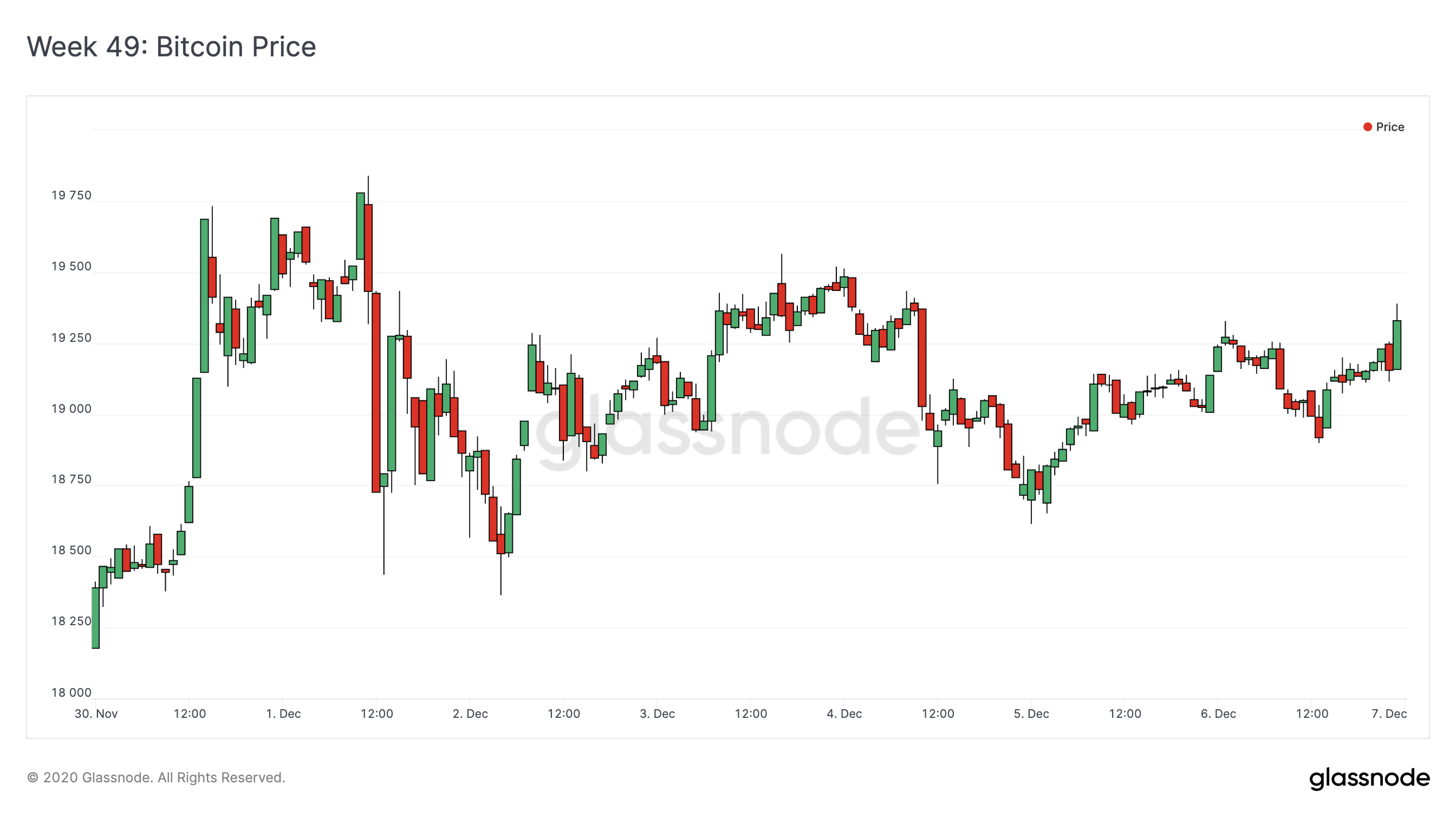 During Week 49, BTC recovered from the previous week's consolidation and stabilized around $19k. On-chain signals suggest that a further correction may be seen before bitcoin breaks above $20k sustainably.