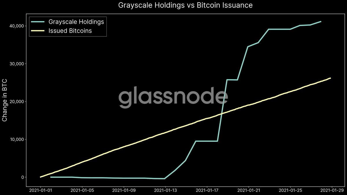 In 2021 so far, around 26,000 BTC have been mined. Meanwhile, digital asset investment fund Grayscale Holdings has acquired over 40,000 BTC in the same period.