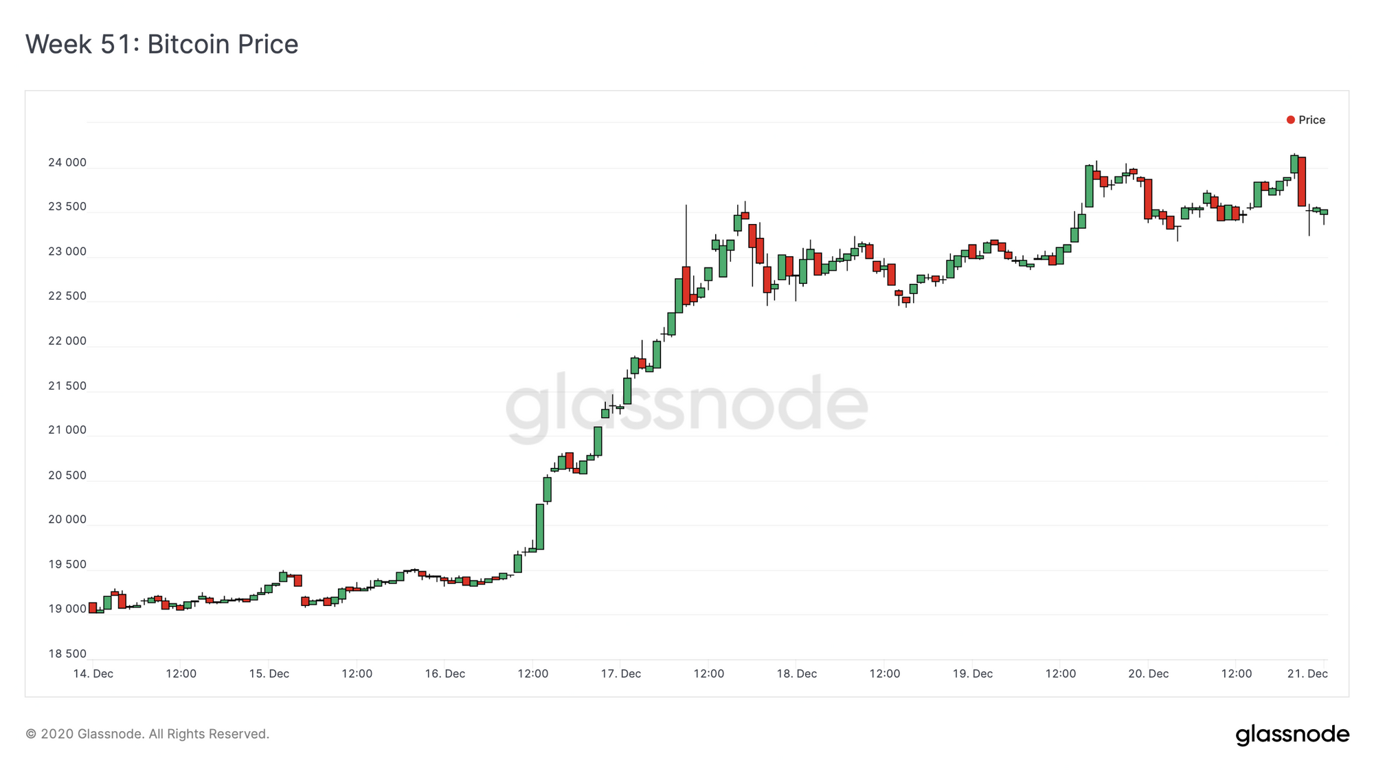 BTC smashed through its previous all-time high to find support above $23k for the first time ever. Meanwhile, on-chain fundamentals remain strongly bullish for BTC and other cryptocurrencies.