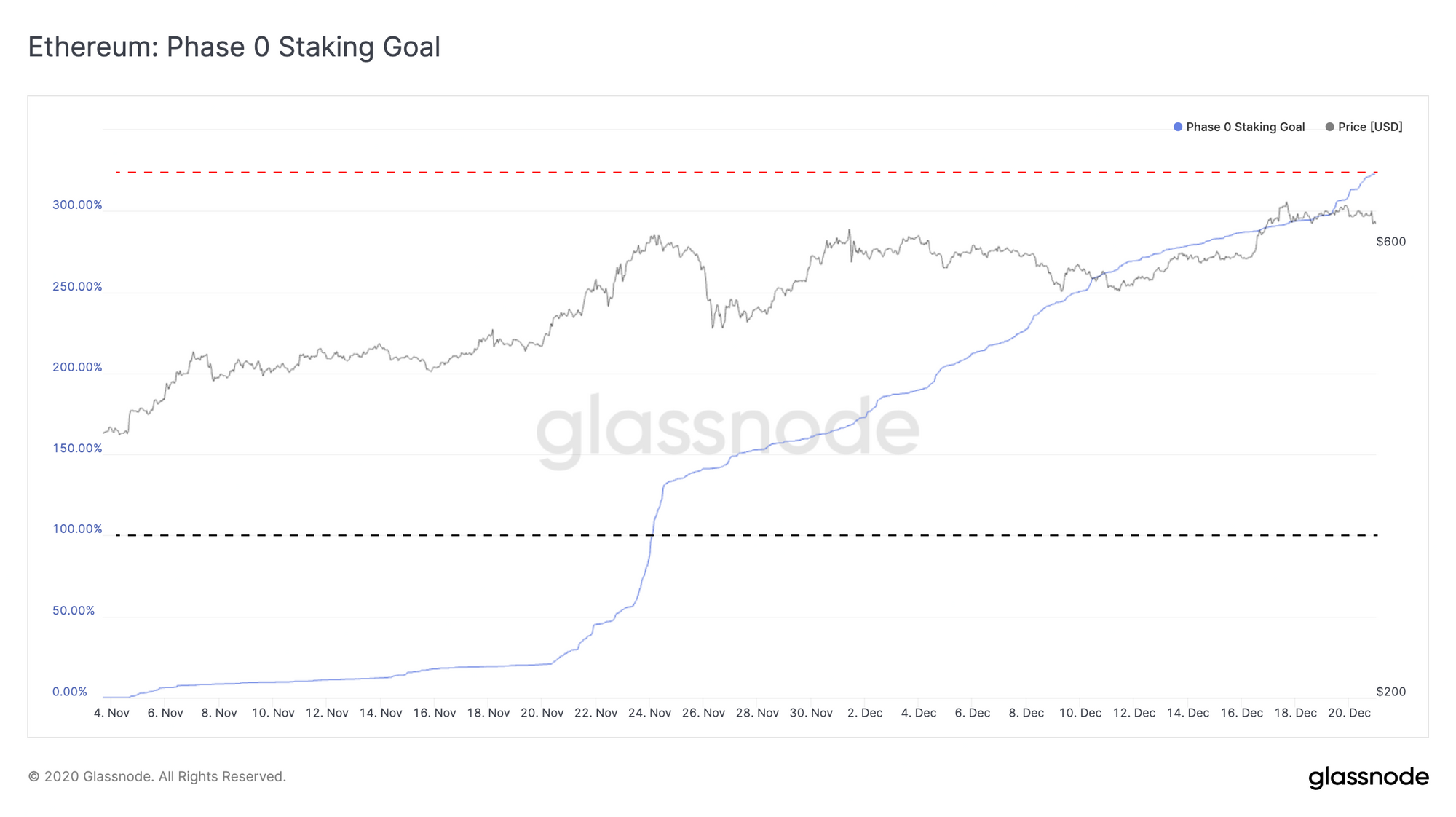After meeting its minimum staking goal on 24 November, the contract has seen continued deposits from participants hoping to stake in ETH2.0, now sitting at almost 1.7 million ETH; over 320% of its initial goal.