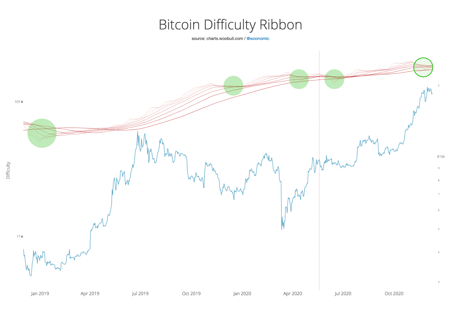 The Bitcoin Difficulty Ribbon, is a reliable medium term indicator tracking the contraction and expansion of mining hash power on the network. Expansions out of a compressed zone are bullish.