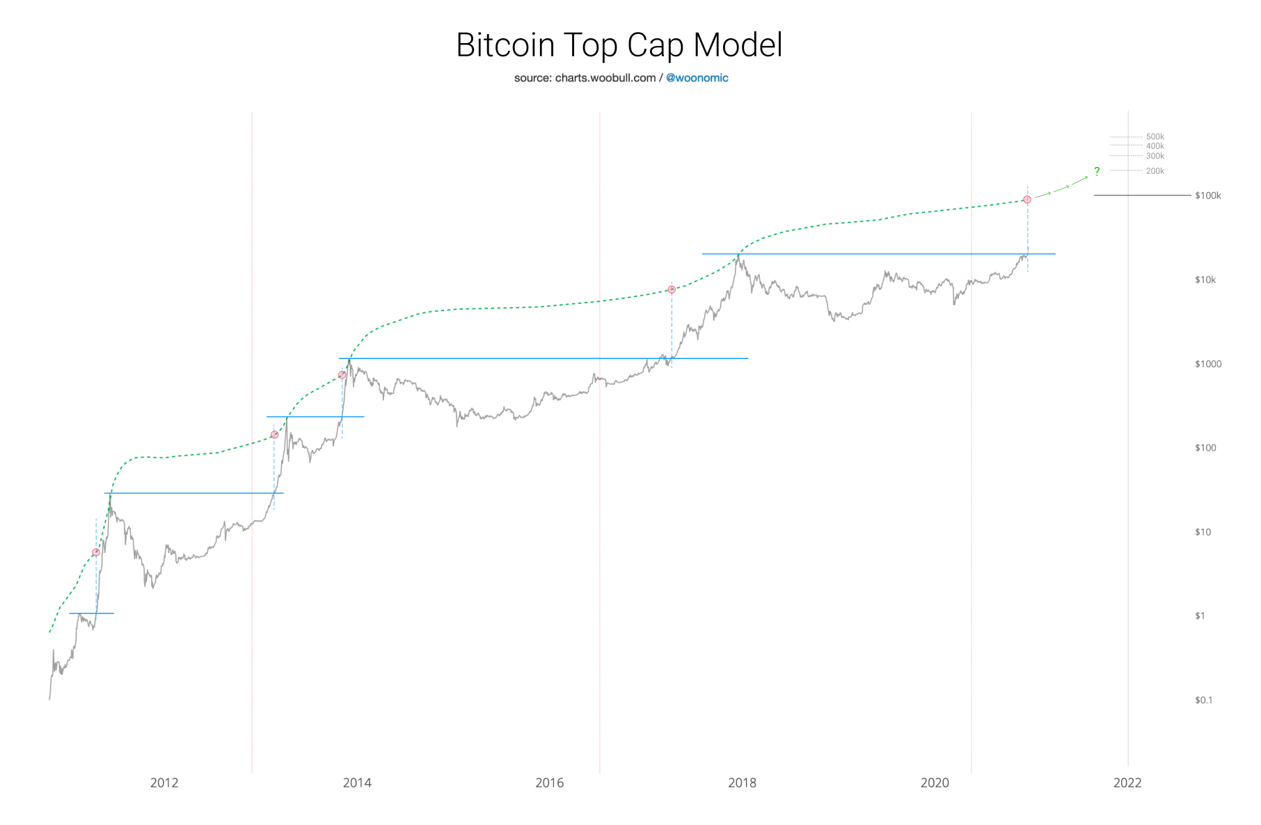 We are now past the all-time-high juncture where my Top Cap model starts curving upwards. While this model does not predict a price, it can estimate a ceiling on price for a point in the future, it has hit every macro market top in Bitcoins history.