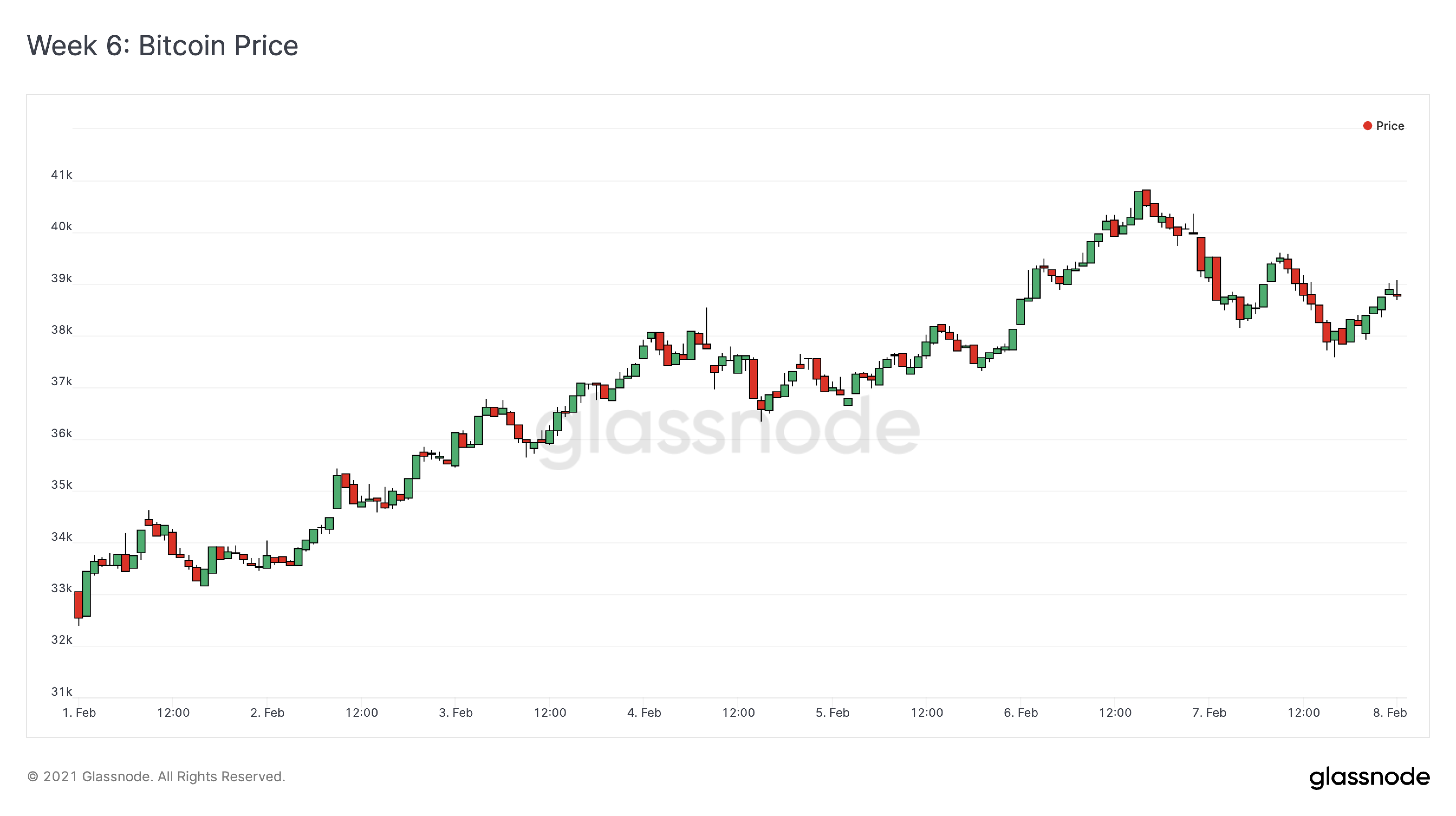 Bitcoin recovered significantly over the past week, coming more comfortably close to $40k once again. After starting the week at $33,060, it climbed consistently and reached a peak of $40,820 on Saturday before dipping slightly, ending the week at $38,760 (an increase of 17% for the week).