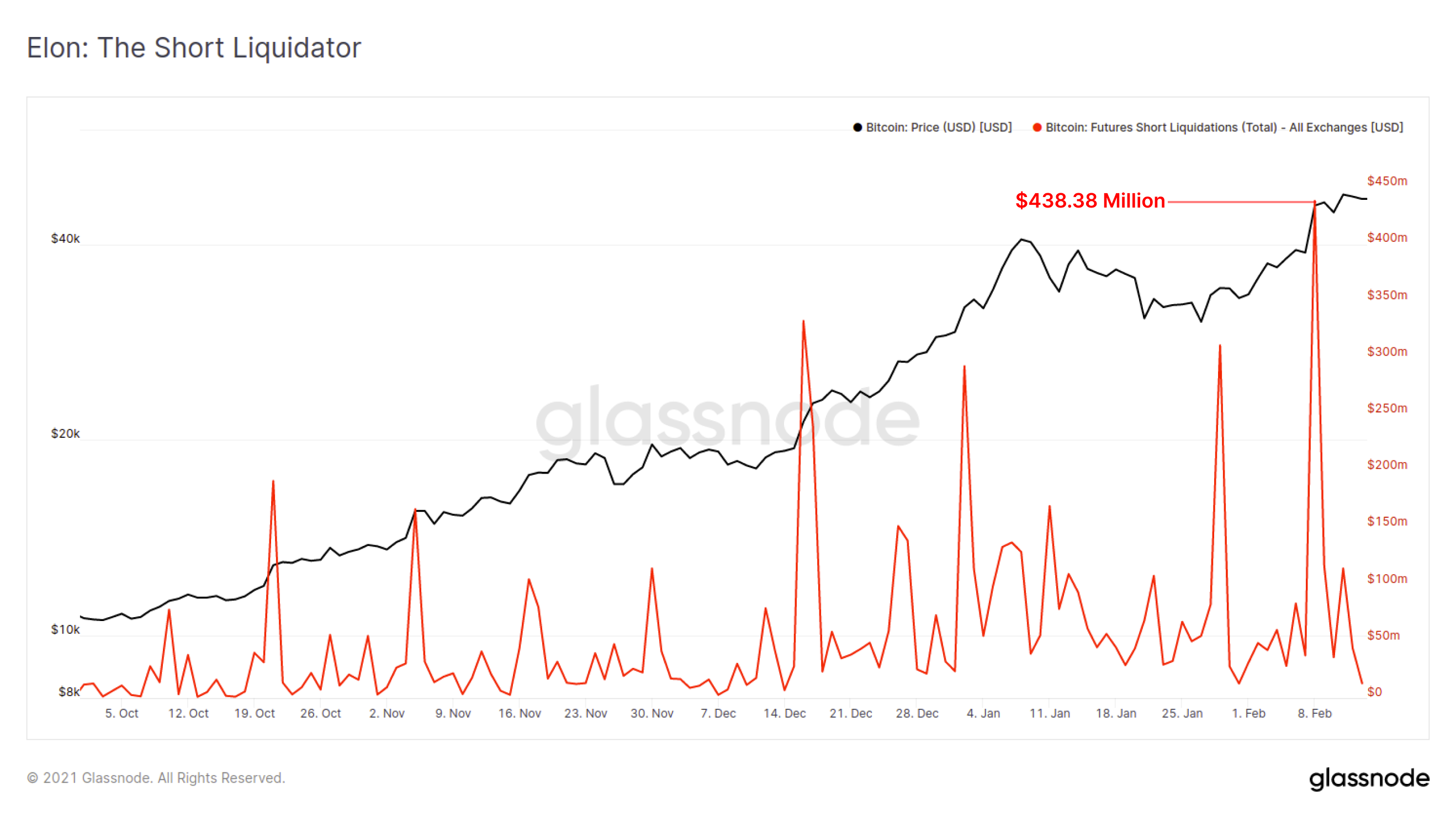 In true Elon form, a whopping $438m in short interest were liquidated between Binance and OKEx on the news.