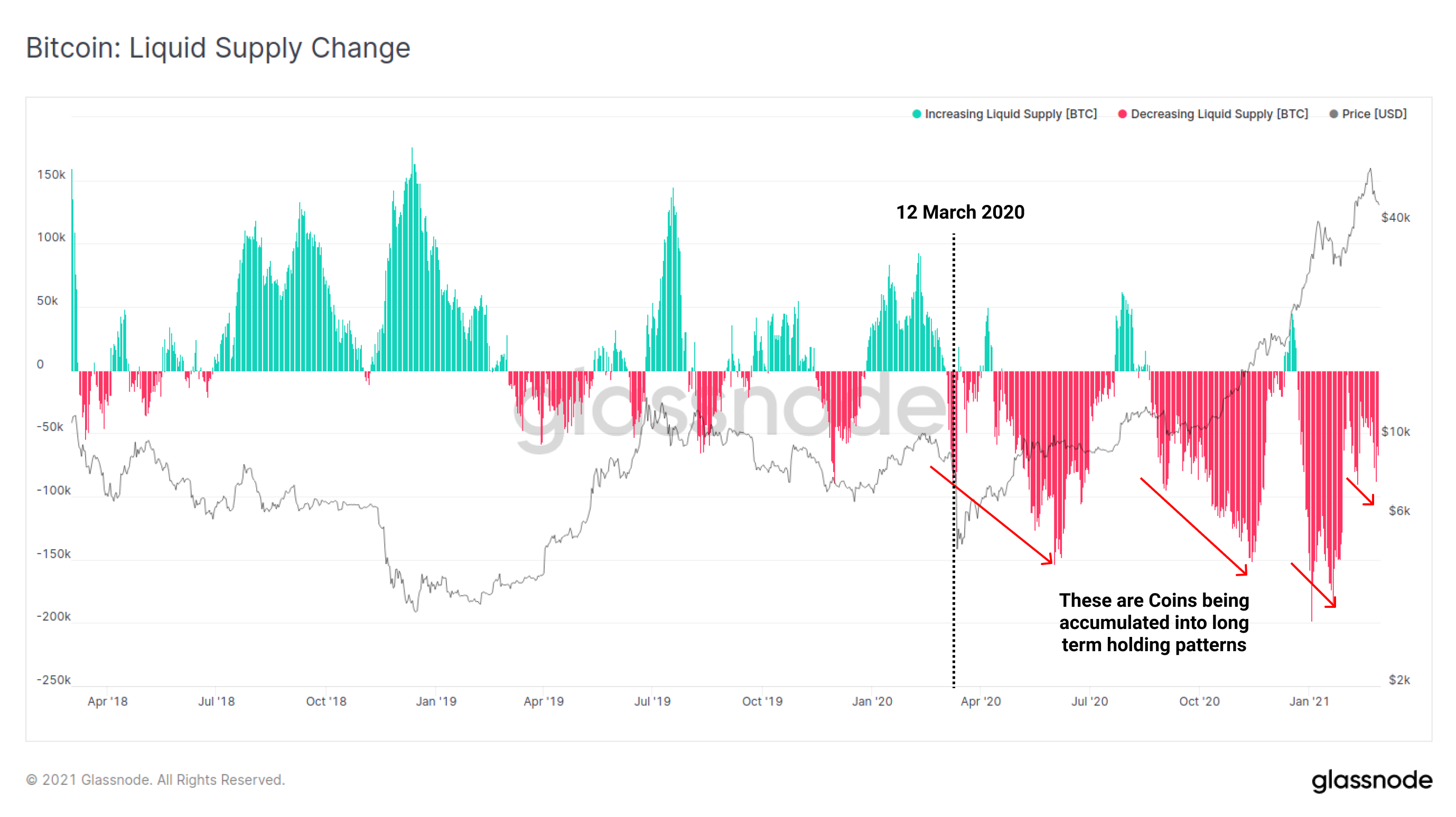 As final evidence that perhaps 'this time is different', the sustained trend and volume of coins being withdrawn into illiquid status continues. The most important observation is the date at which this trend commenced: 12 March 2020.