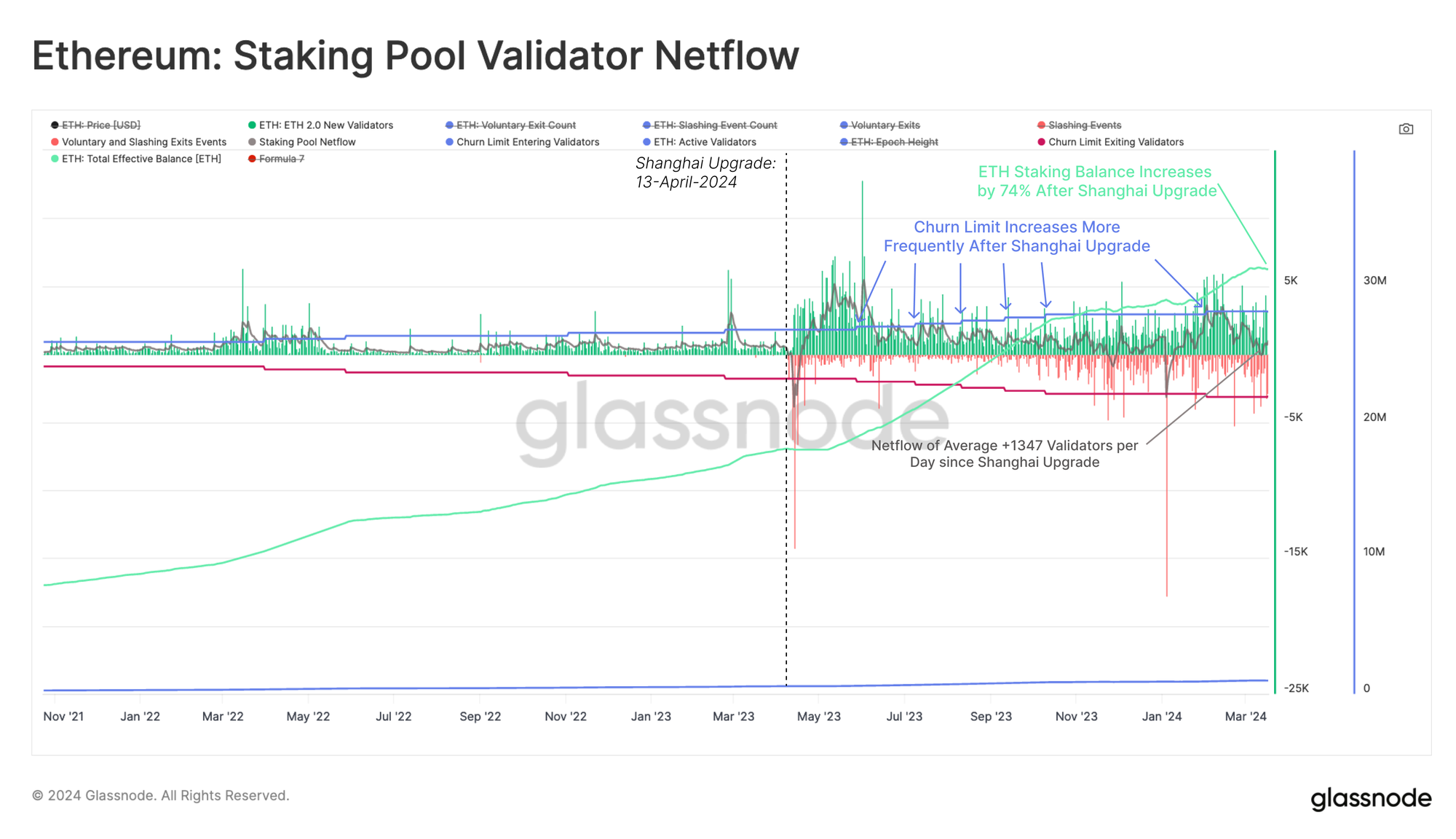 After the Shanghai upgrade, the number of active validators saw a large increase, averaging +1347 new validators per day. However, as the number of validators increased, it was noticed that a side-effect was a slowing down of node communication.