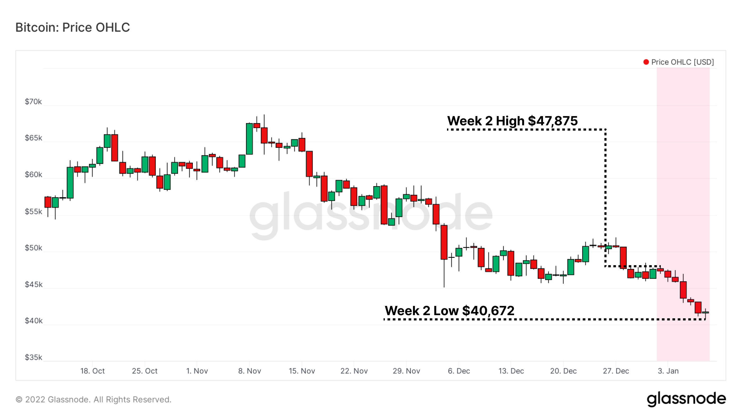 After opening at $47,875, Bitcoin led global declines, trading down as much as -15% year-to-date. Prices have since closed the first full week of 2022 at $40,672, putting the bulls on the back-foot to start the year. In this week's newsletter, we will unpack a number of concepts underlying the reaction of market participants including: