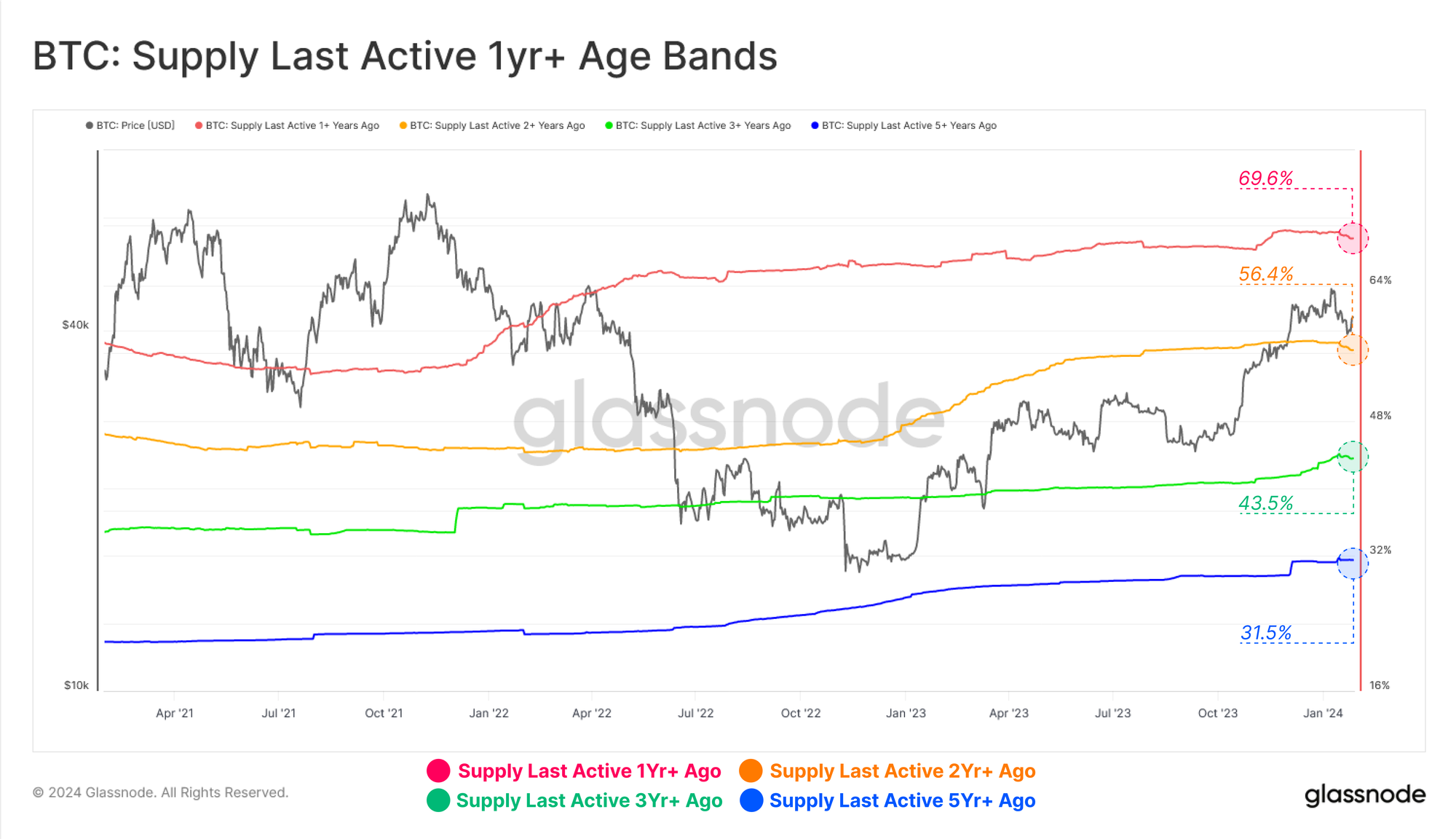The Bitcoin market continues to show resilience, recovering from the initial sell-the-news drawdown following ETF approvals. In particular, the market is working through the significant supply overhead created by investors rebalancing capital out of the GBTC product since its conversion.