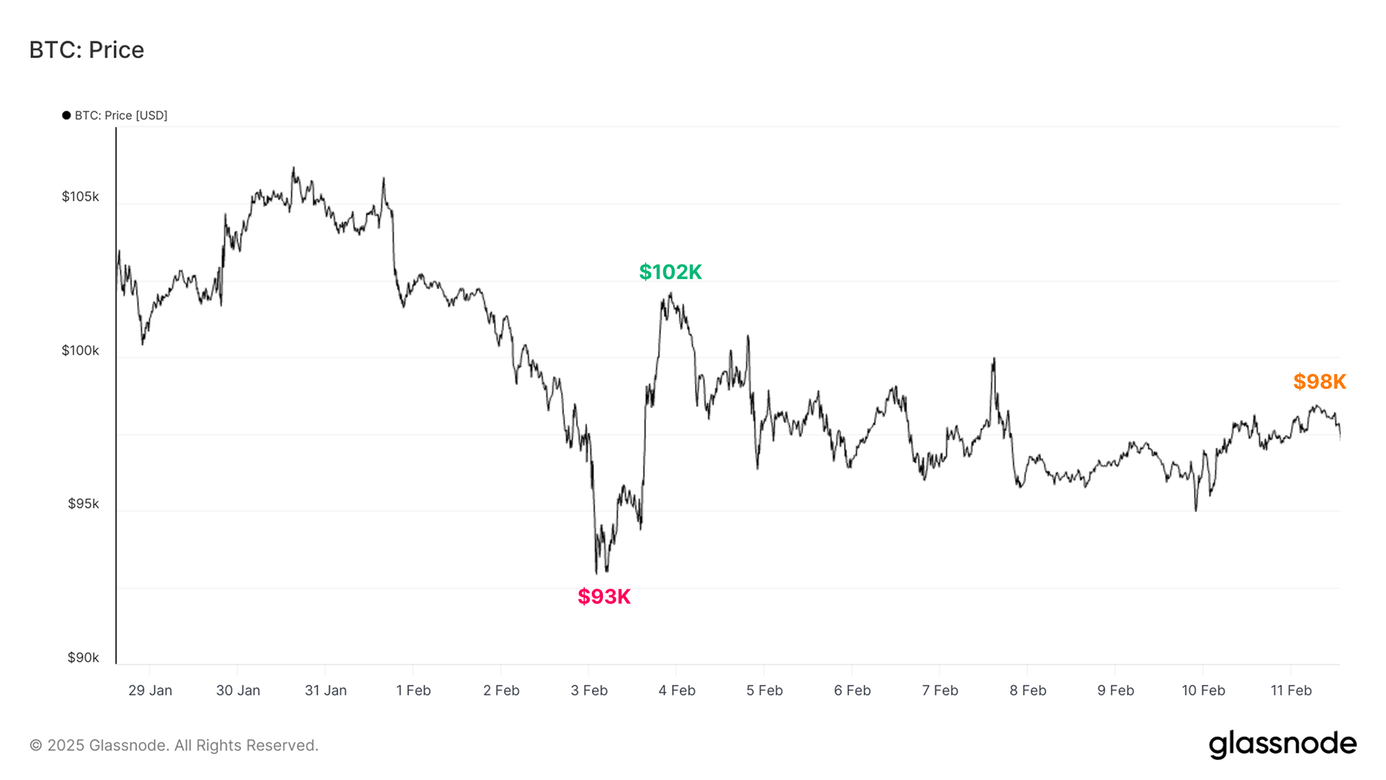 Last week, Bitcoin investors experienced an intense whipsaw in price action. BTC prices initially fell to a low of $93k, followed by a brief recovery to $102k, and are now trading closer to $98k. The indecisive price action is largely in response to President Trump’s threat of tariffs applied to Canada, Mexico and China, providing an uncertain macro backdrop for investors. Alongside this, persistent strength in the US dollar has contributed to a marginally stressed liquidity environment.