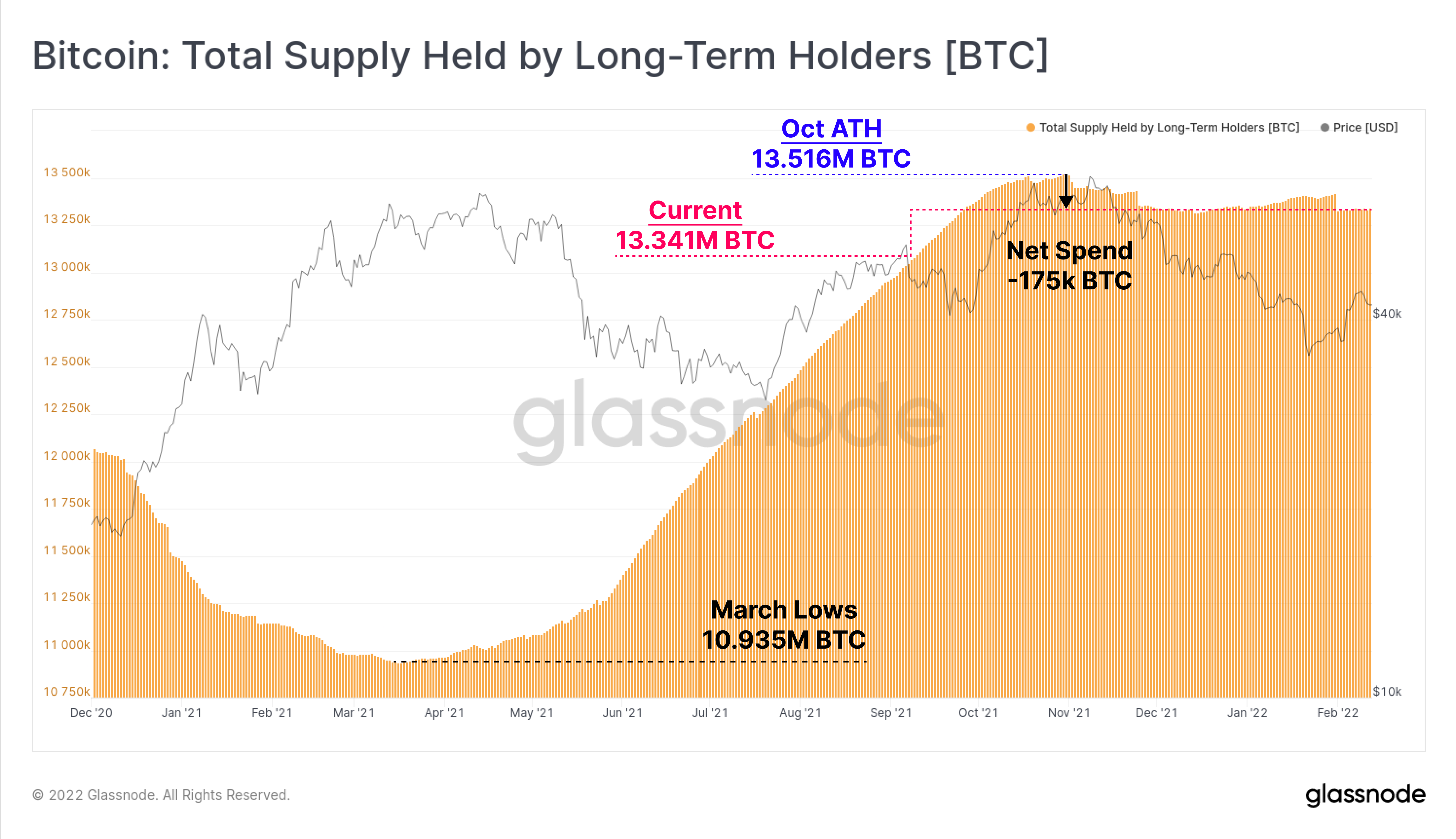 Since the October ATH, LTHs have spent only 175k BTC on net, demonstrating a remarkably resilient cohort of hodlers, despite the prevailing macro headwinds.