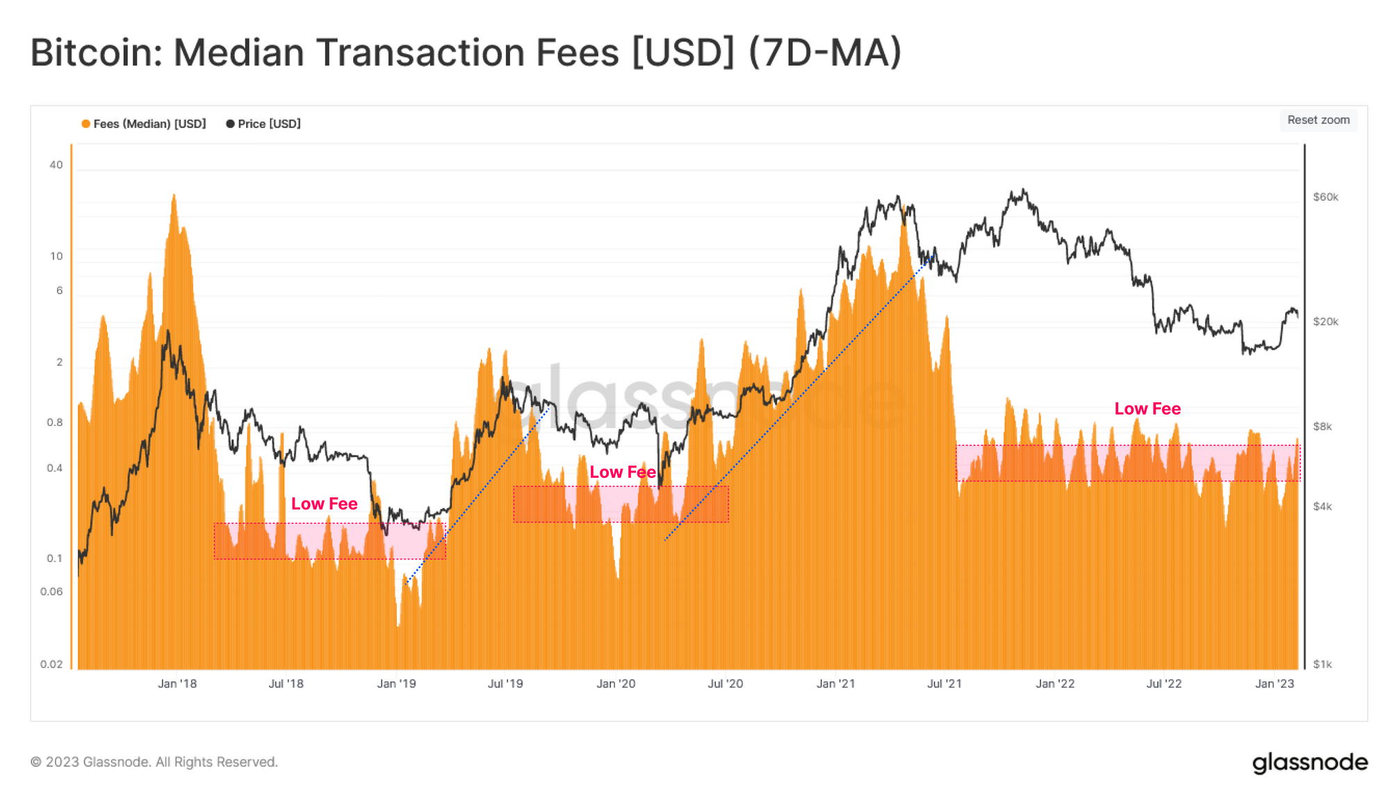 Reviewing the history of this indicator illustrates that retail investors competition for inclusion in the next block has not yet revived since the market crash after the 2021 ATH.