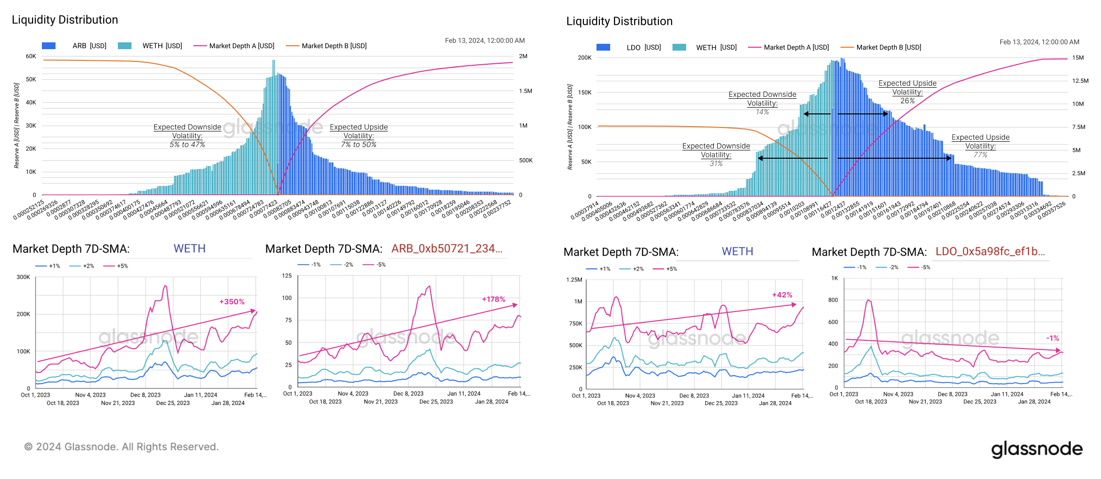 We will now examine the pools for the top token in each Ethereum sector. This includes assessing the distribution of liquidity across various price ranges, and observing the evolution of market depth (similar to our hypothesis established in WoC 36).