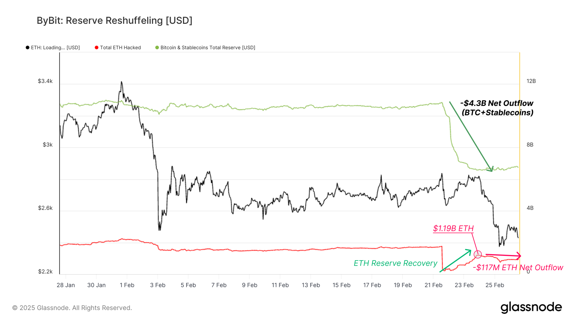 By analyzing Bybit’s Ethereum replenishment efforts alongside significant Bitcoin and Tether outflows, we gain insight into how the exchange - and, by extension, larger entities - responded to one of the largest hacks in crypto history.
