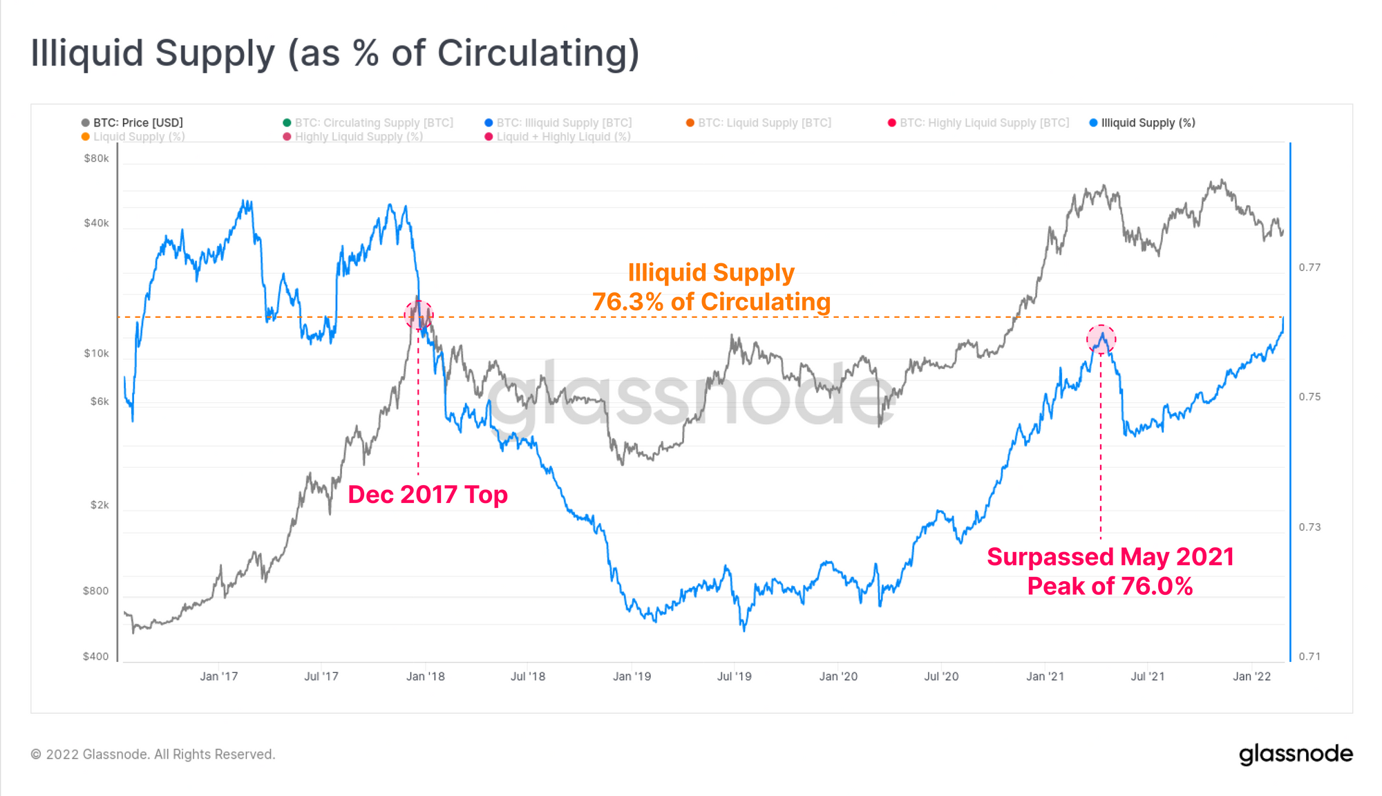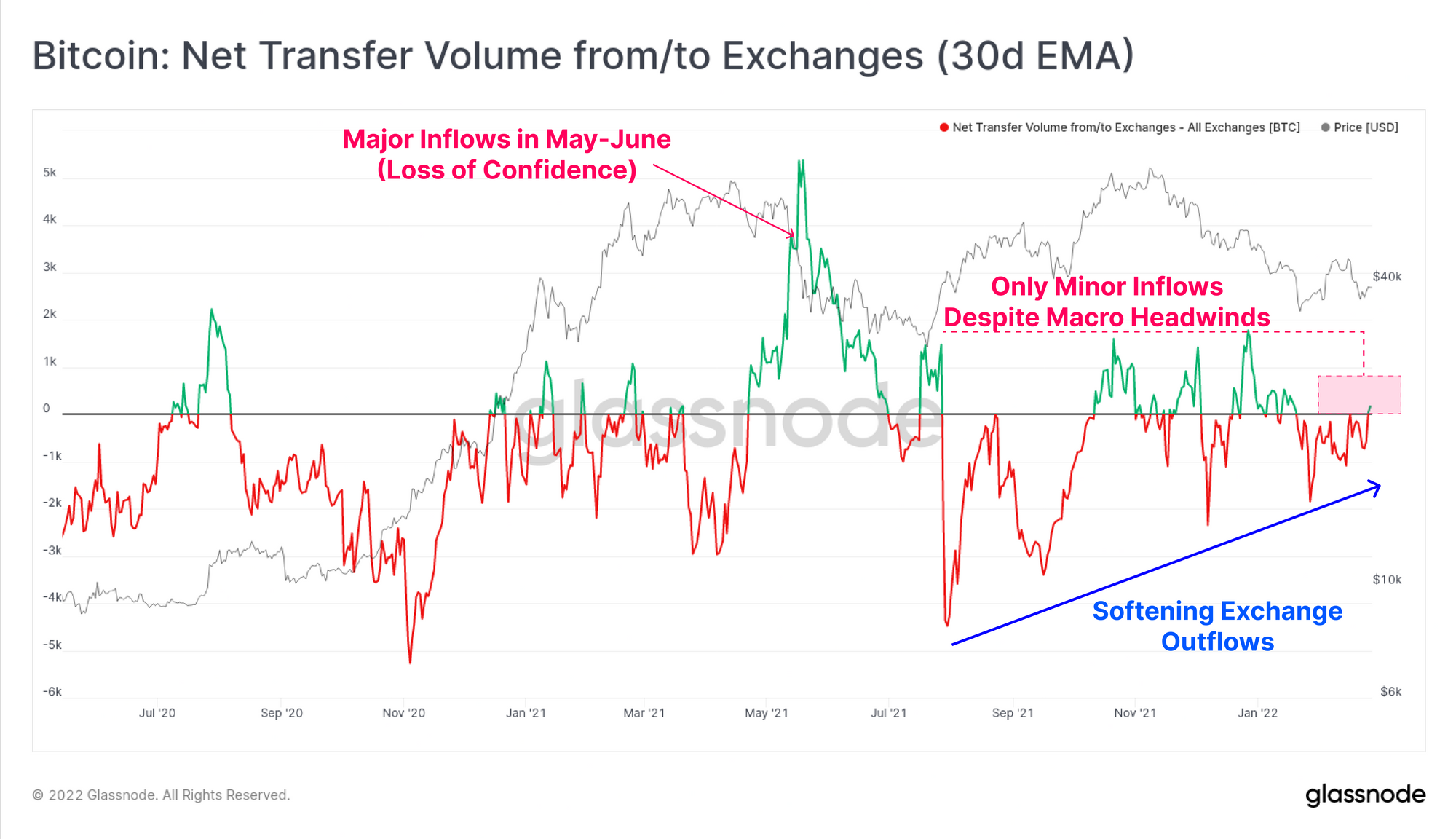Amidst kinetic conflict in Ukraine, investors who purchased around the Bitcoin ATH have almost completely capitulated. On the flip-side, the cohort of HODLers continue to accumulate, seemingly unfazed by macro and geopolitical risks.