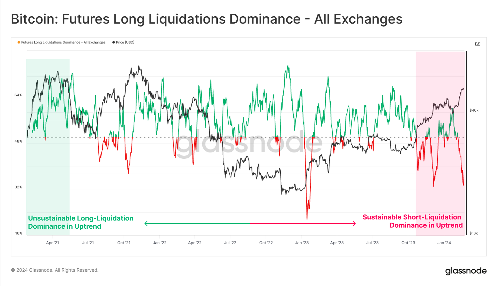 We have also seen a regime of heavy short liquidation dominance during the rallies into ETF approvals. Whilst market neutral cash-and-carry traders are being attracted to the short-side, the market is still seeing directional short-sellers being liquidated at a higher rate than longs.