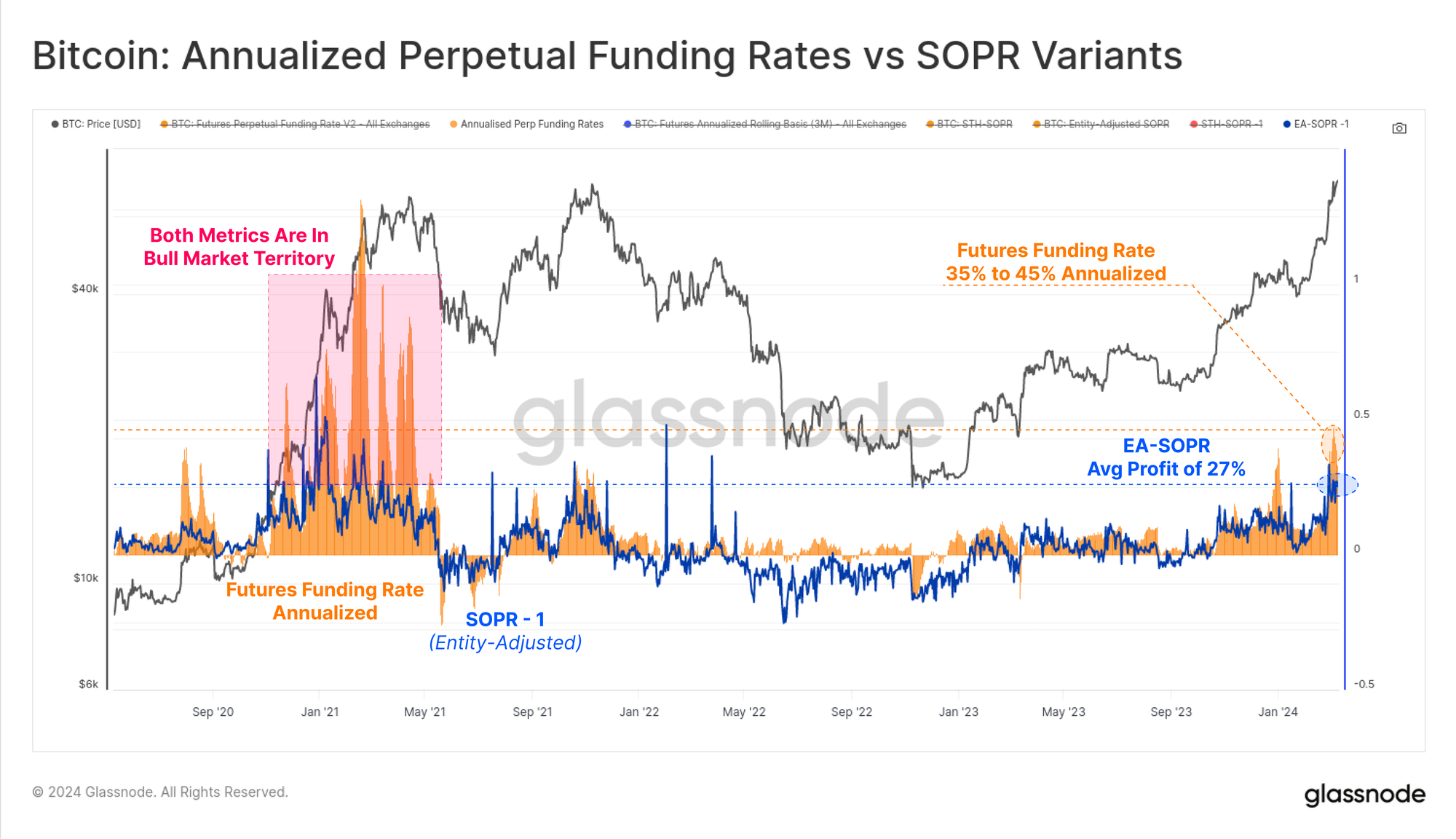 Bitcoin has broken to its fourth cycle all-time-high, rallying above $72k, and pushing sentiment one step closer to Euphoria. The classic wealth transfer from the HODLer cohort to speculators is now well underway, with significant upticks in spot profit taking, and demand for futures leverage.