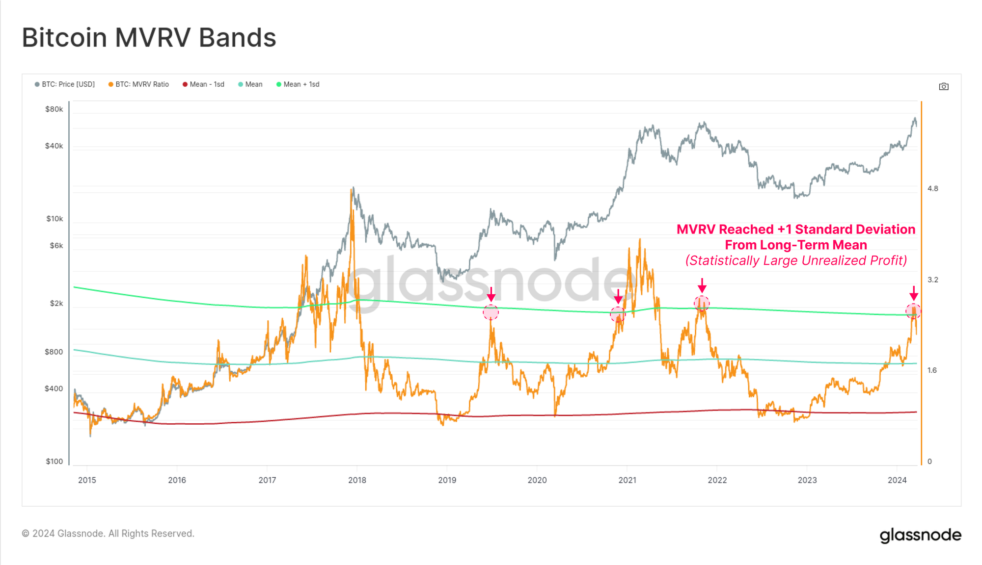 In our video report from last week, we explored how the Bitcoin market had reached several statistically significant levels with respect to Unrealized profit held within the supply. Metrics like MVRV and the AVIV Ratio reached +1 standard deviation from their long-term means.