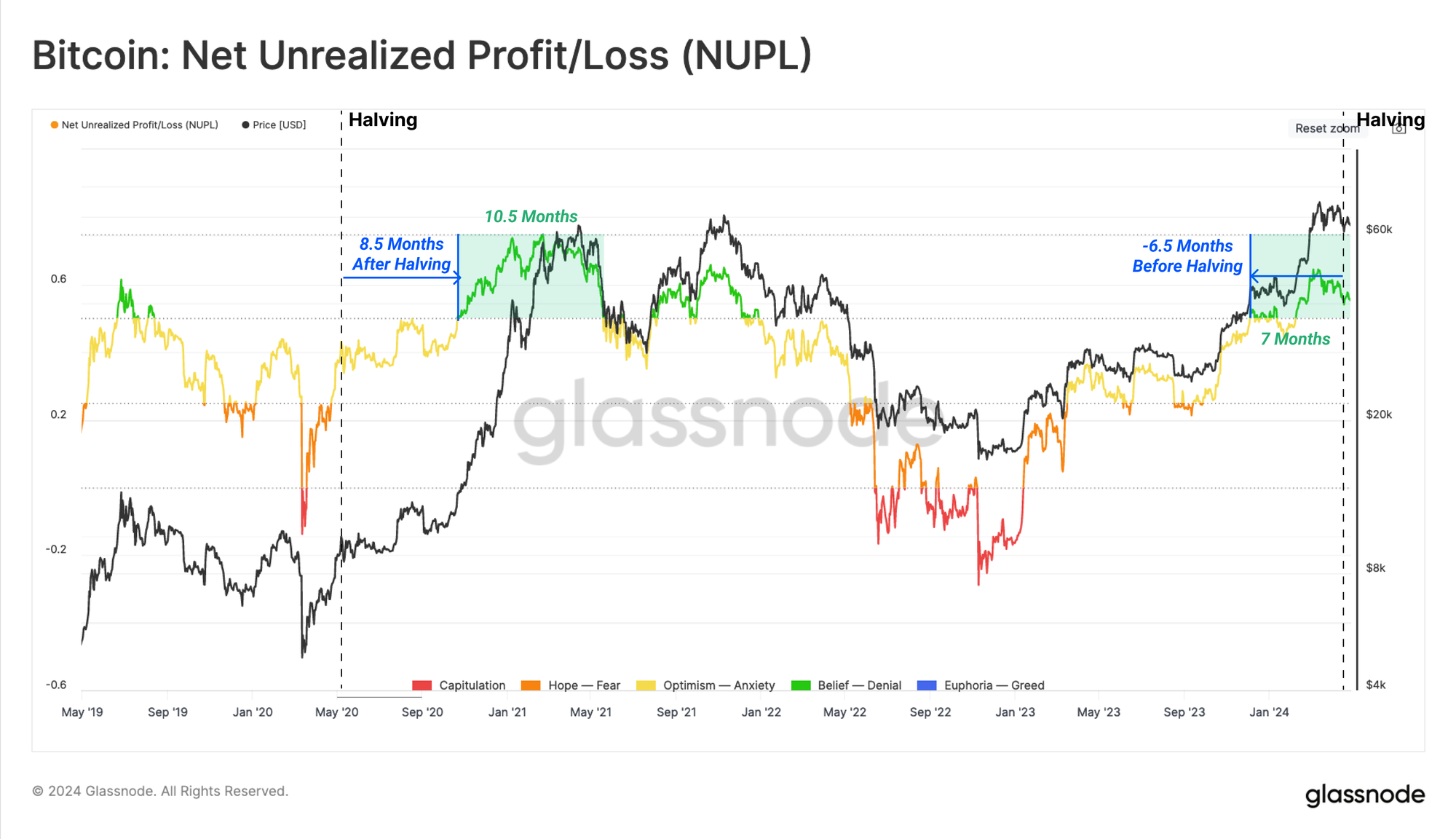 In the 2020-21 cycle, this phase was triggered 8.5 months after the Bitcoin halving, and saw sustained upside for almost 10.5 months afterwards. However, in this cycle, NUPL breached 0.5 approximately 6.5 months before the halving. This distinct shift highlights the significance of US ETF in shaping and accelerating price action by introducing powerful demand into the market.