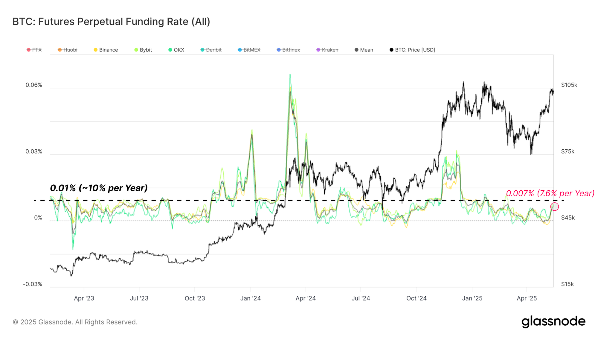The relatively light long positioning in the perpetual futures market is another key signal of derivatives playing catch-up with spot market momentum. The funding rate for major exchanges is one of the most effective tools to gauge the directional bias in these markets, and for the last few weeks, it has been remarkably neutral, despite the bullish market impulse.