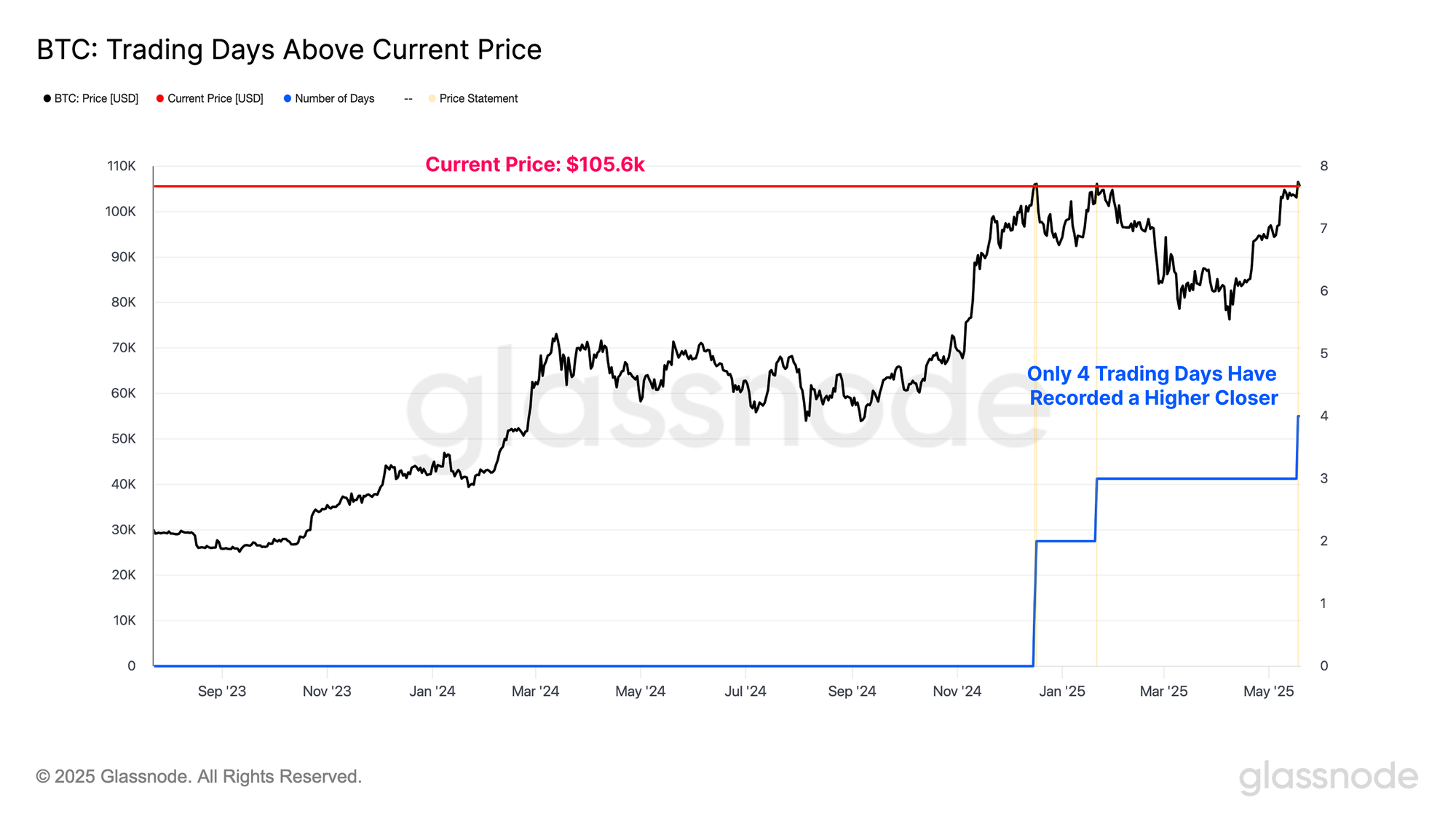 To date, only 4 trading days have ever recorded a higher daily closing Bitcoin price, and the last weekly close of $106.5k is the highest in history. Bitcoin is also trading approximately 40% higher over the last six weeks, highlighting how strong the market recovery has been.