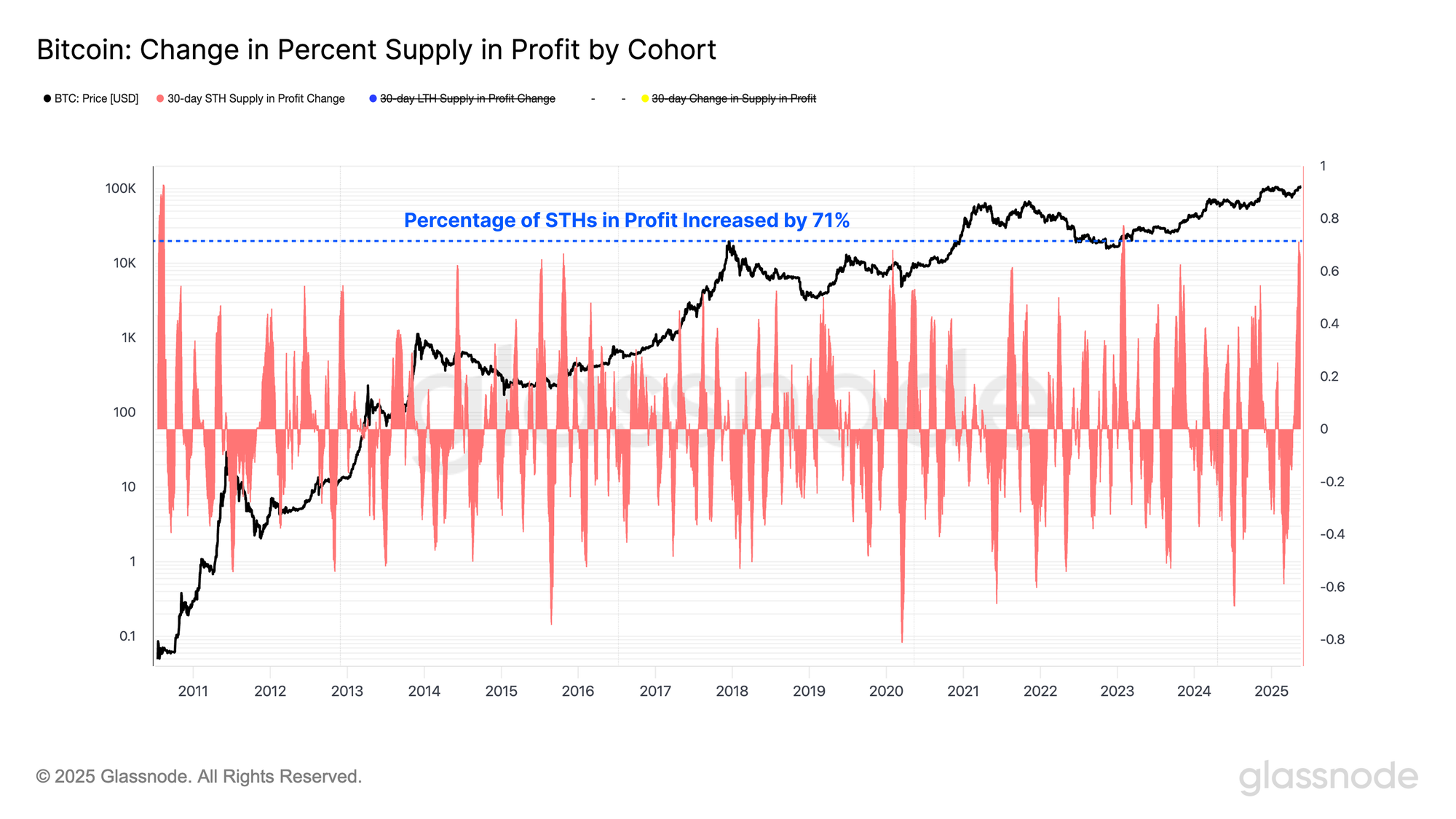 When the market recovers quickly from a drawdown, we can track the 30-day change in the proportion of supply held in profit across various cohorts. This helps us identify which investor groups have benefited from the recovery and can illustrate major shifts in sentiment.