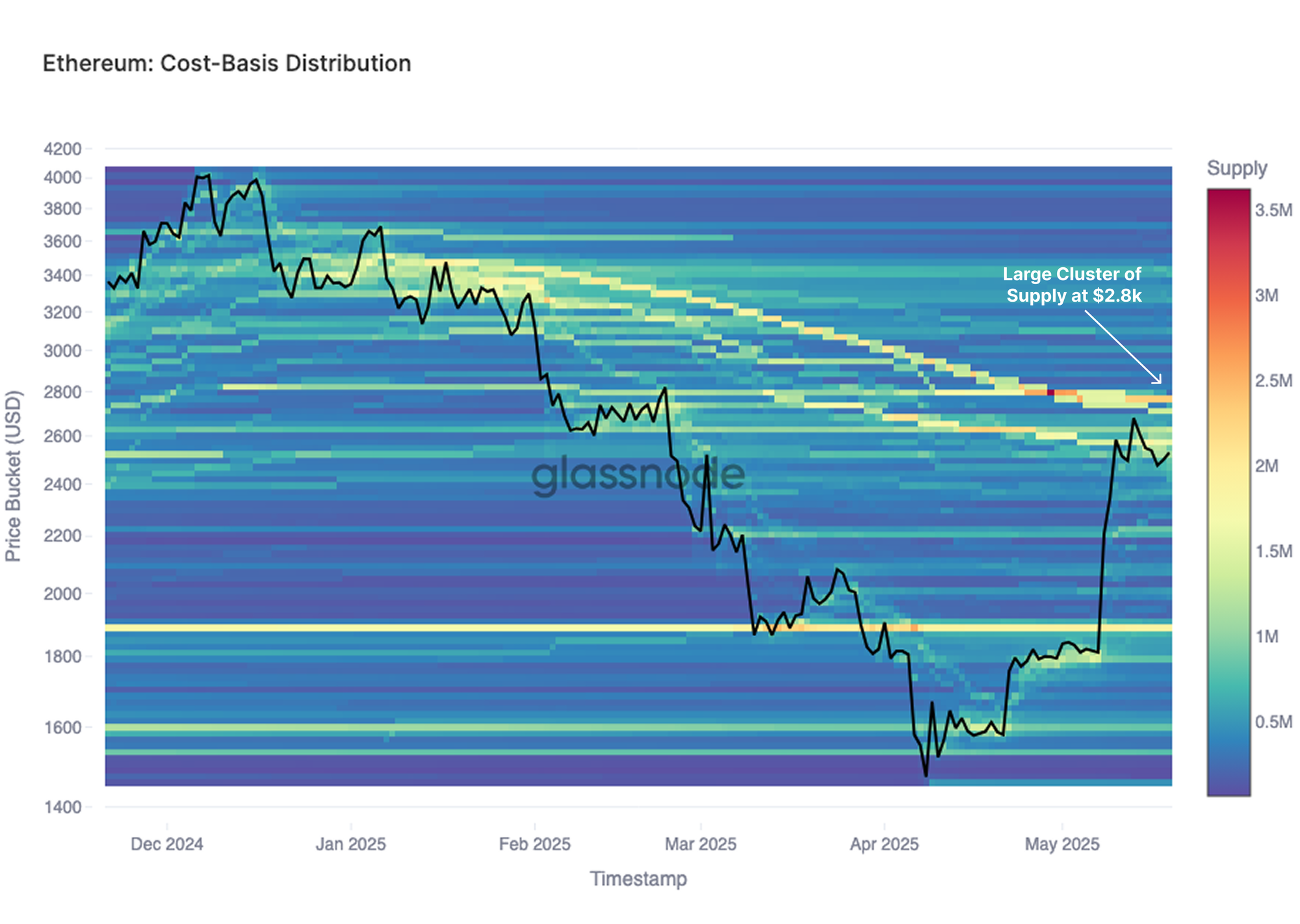We can find confluence when examining Ethereum’s Cost-Basis Distribution profile. Presently, there is a significant concentration of investor cost basis levels around the $2,800 level. This region is likely to attract increased sell-side pressure, as many investors who were previously underwater may look to de-risk at, or near, their breakeven level, and take some chips off the table.
