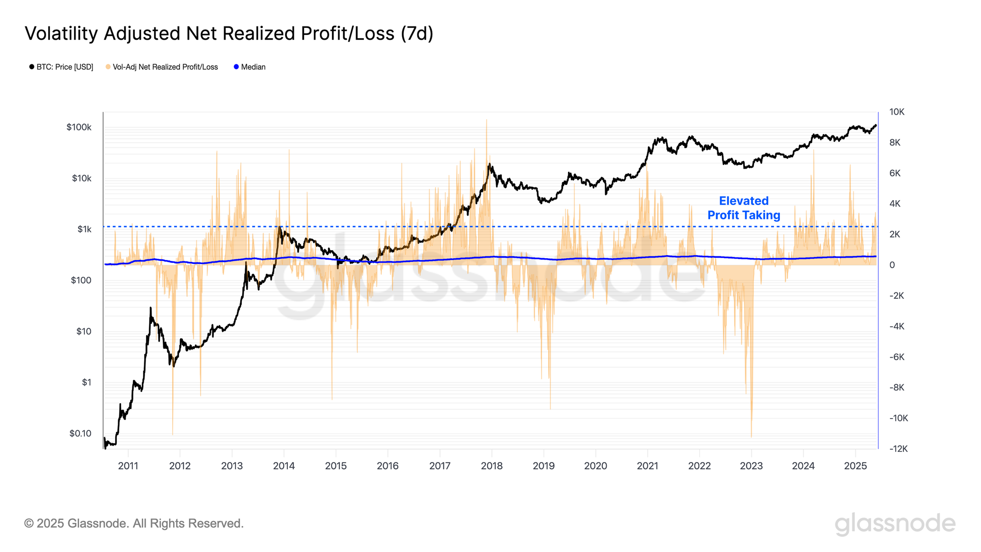 In response to these extremely profitable conditions, there has been a distinct increase in profit taking activity, which can be observed via the Volatility-Adjusted Net Realized Profit/Loss metric.
