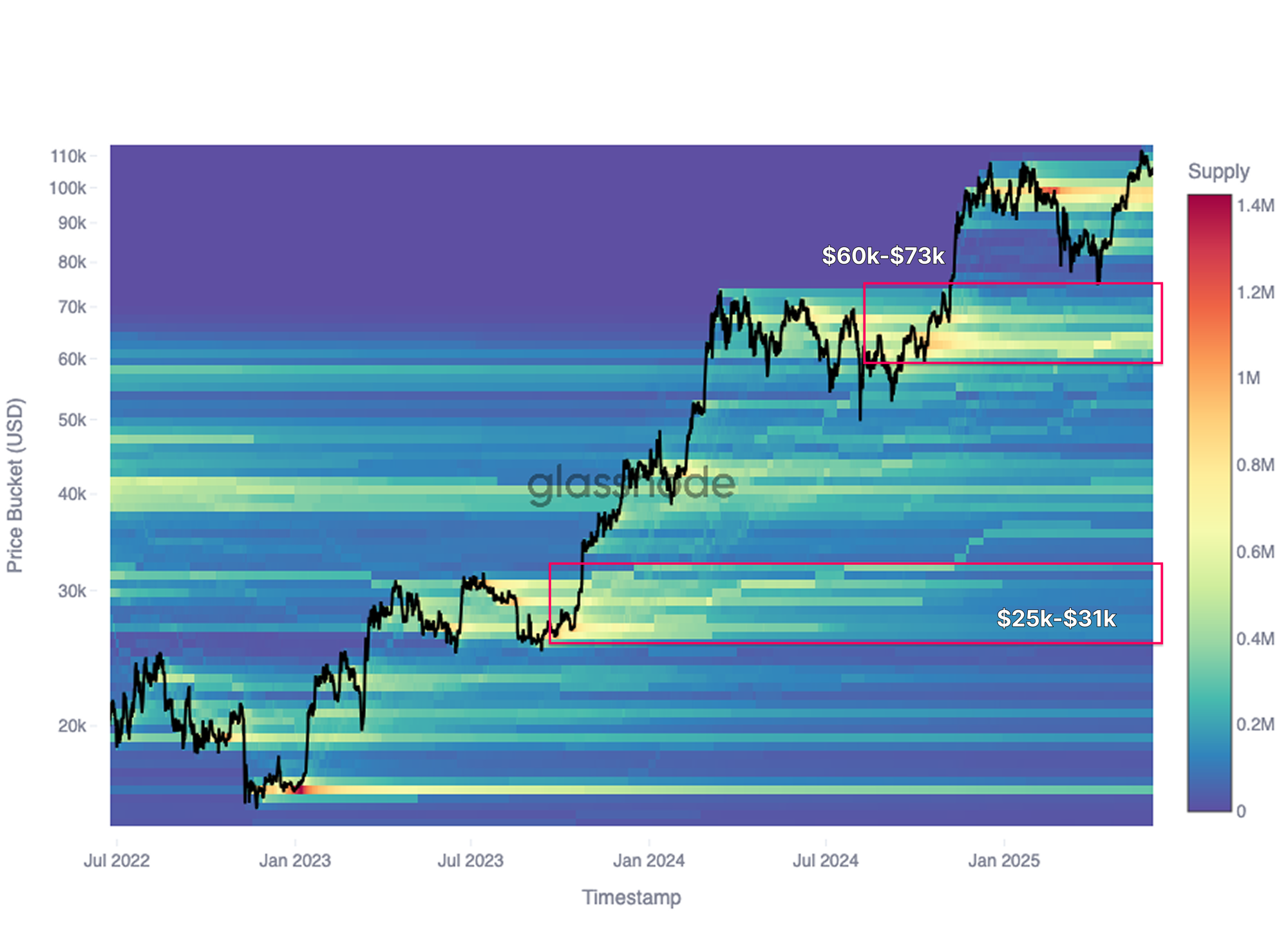 To understand the forces driving Bitcoin’s recent move beyond $111k, we need to take a broader view of the market structure. By examining the CBD Heatmap from the June 2022 cycle bottom onward, a clear pattern of distribution by past accumulators begins to emerge.