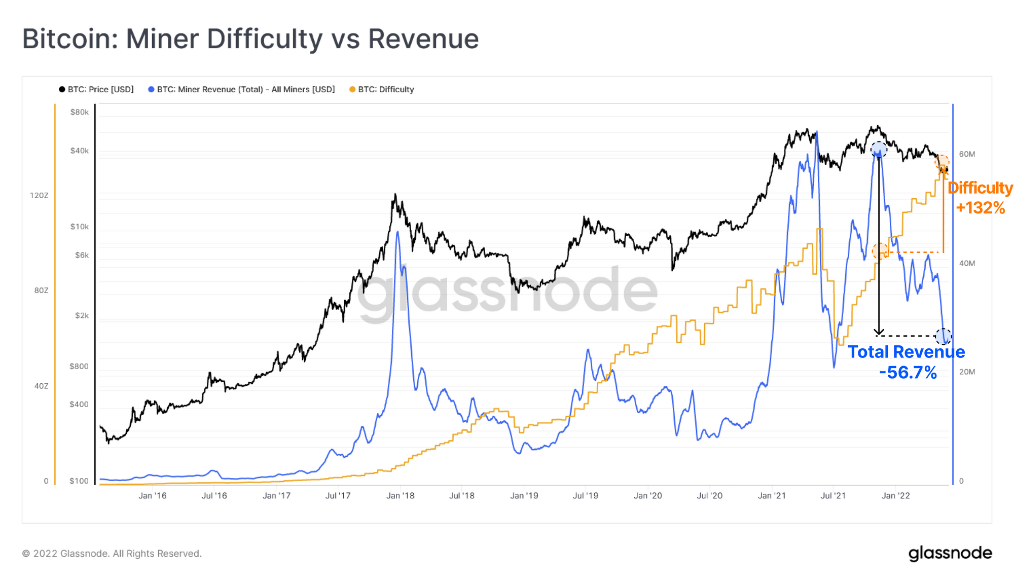 With the market trading near the price lows of the 2021-22 cycle, a great majority of investors are now holding unrealized losses. Furthermore, miners appear to experiencing some income stress, with revenues falling, whilst production costs climb.