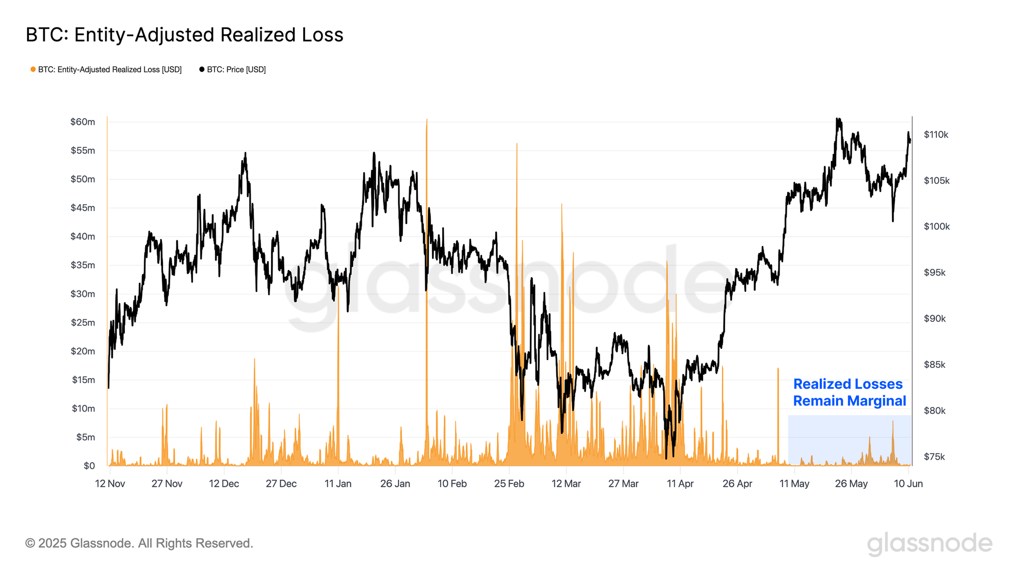 Encouragingly, the wave of fear in market sentiment did not translate into a meaningful shift in spending behavior. When assessing losses locked in on-chain, only -$200M of losses were realized, with the magnitude significantly shallower than previous correction events. This suggests that loss-taking remained contained, with investors largely unfazed by the drawdown.