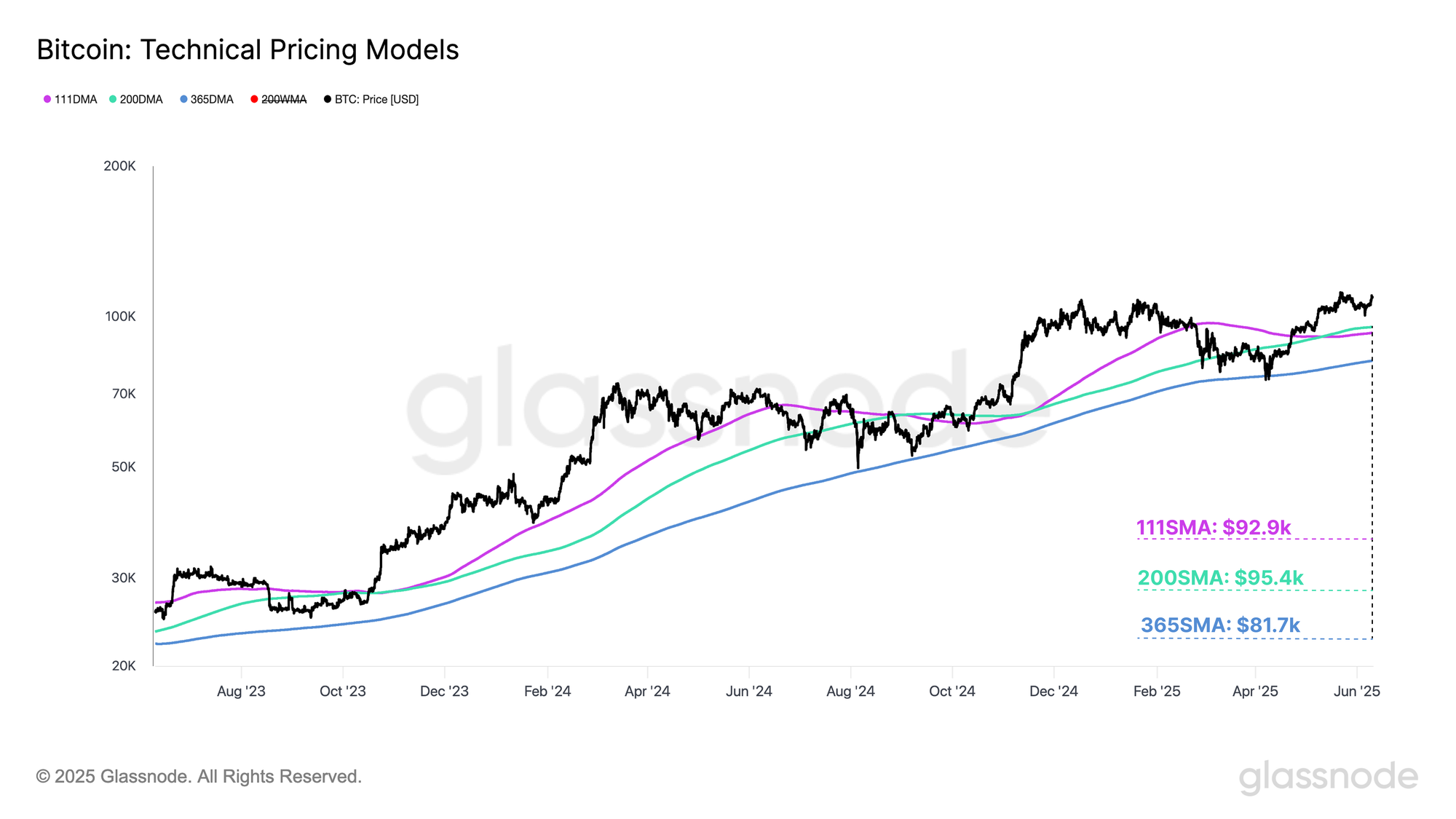 With price is commonly considered as the ultimate distillation point of supply and demand, the 111DMA, the 200DMA and the 365DMA have historically served as robust momentum gauges for Bitcoin, with elevation above all three generally a constructive observation.