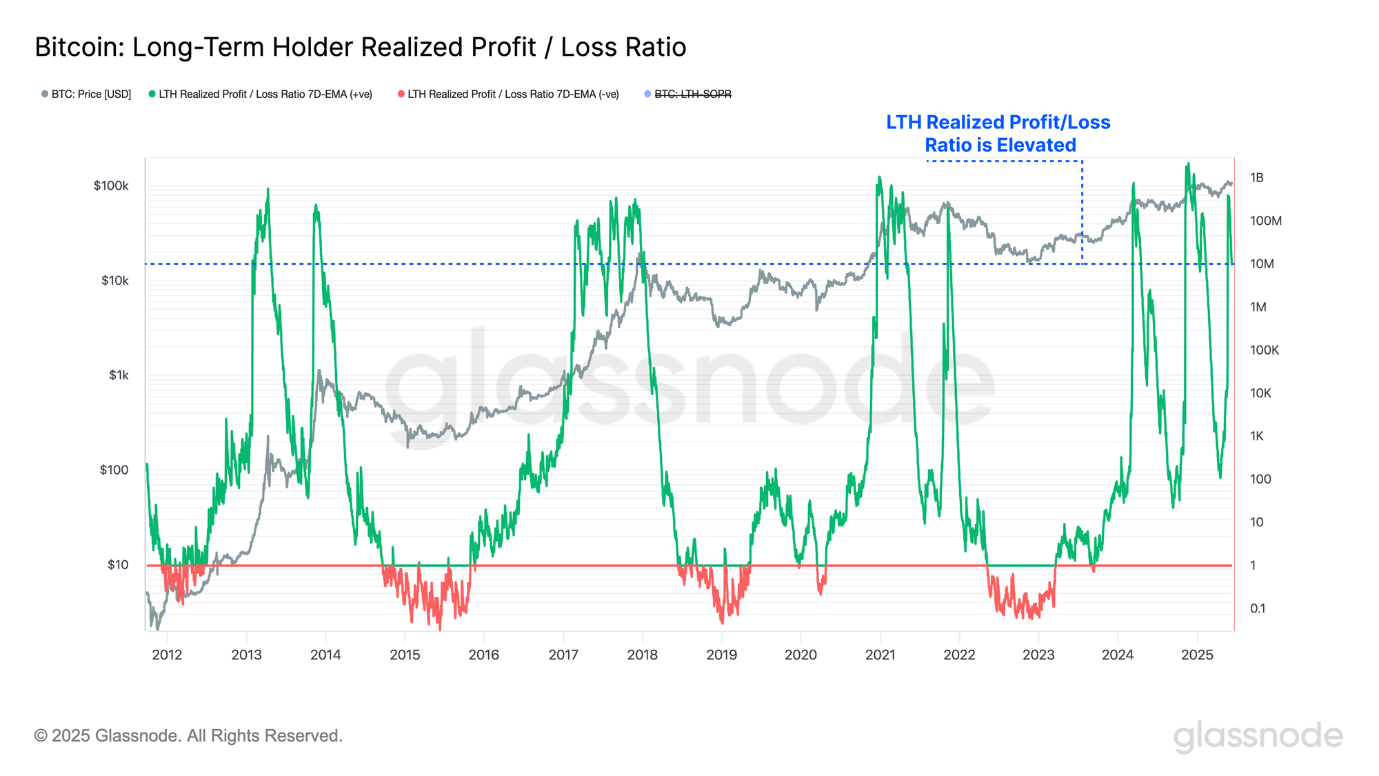 With Bitcoin trading just a stone’s throw from its ATH, it is prudent to assess the behavior of Long-Term Holders (LTHs), a cohort known to become increasingly active at market extremes. Historically, outsized distribution from this group has aligned with overheated market conditions and, at times, signaled transitions into bear market regimes.