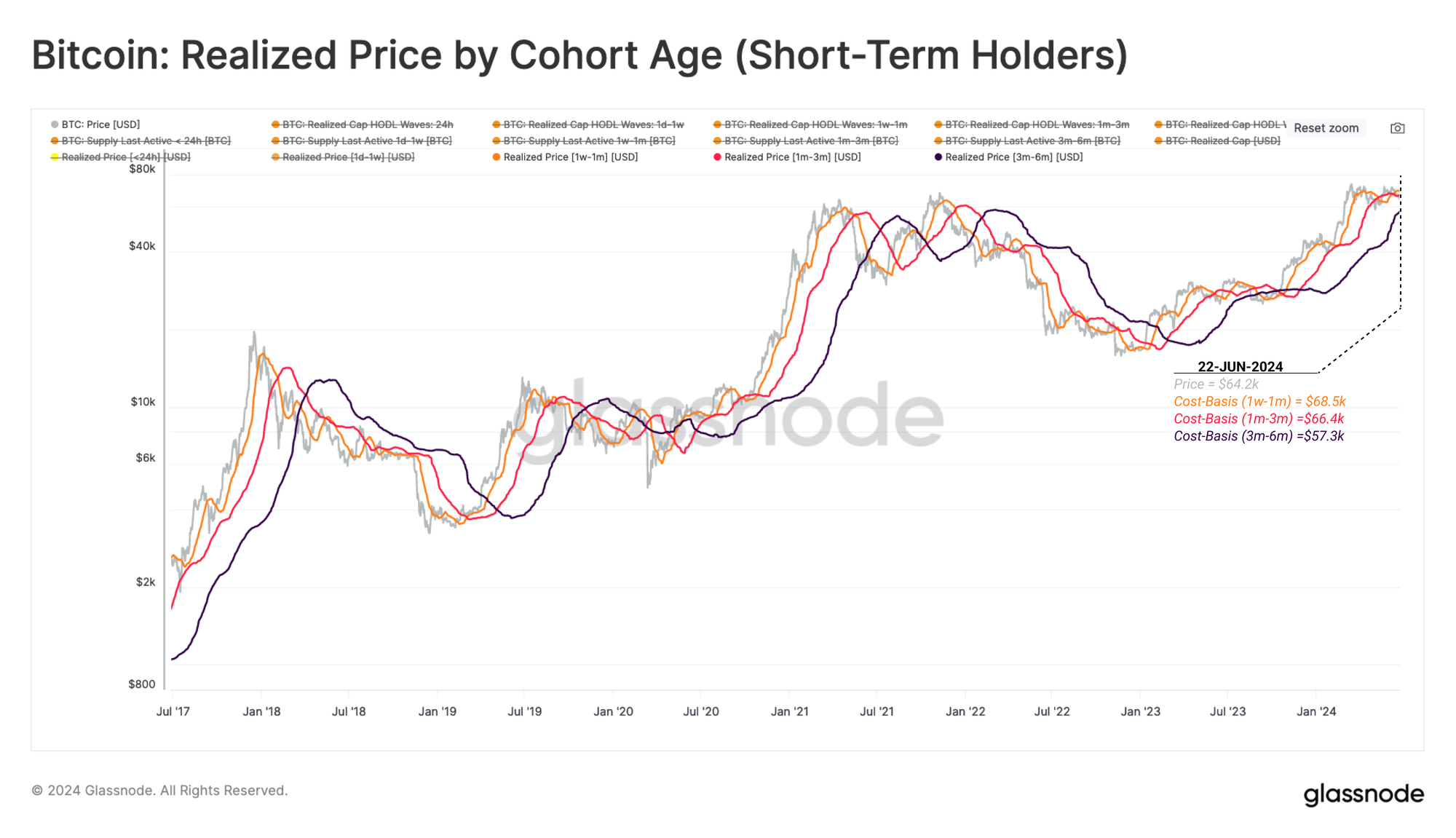 We can also characterise market momentum by comparing the cost basis of these cohorts to each other. The chart below highlights: