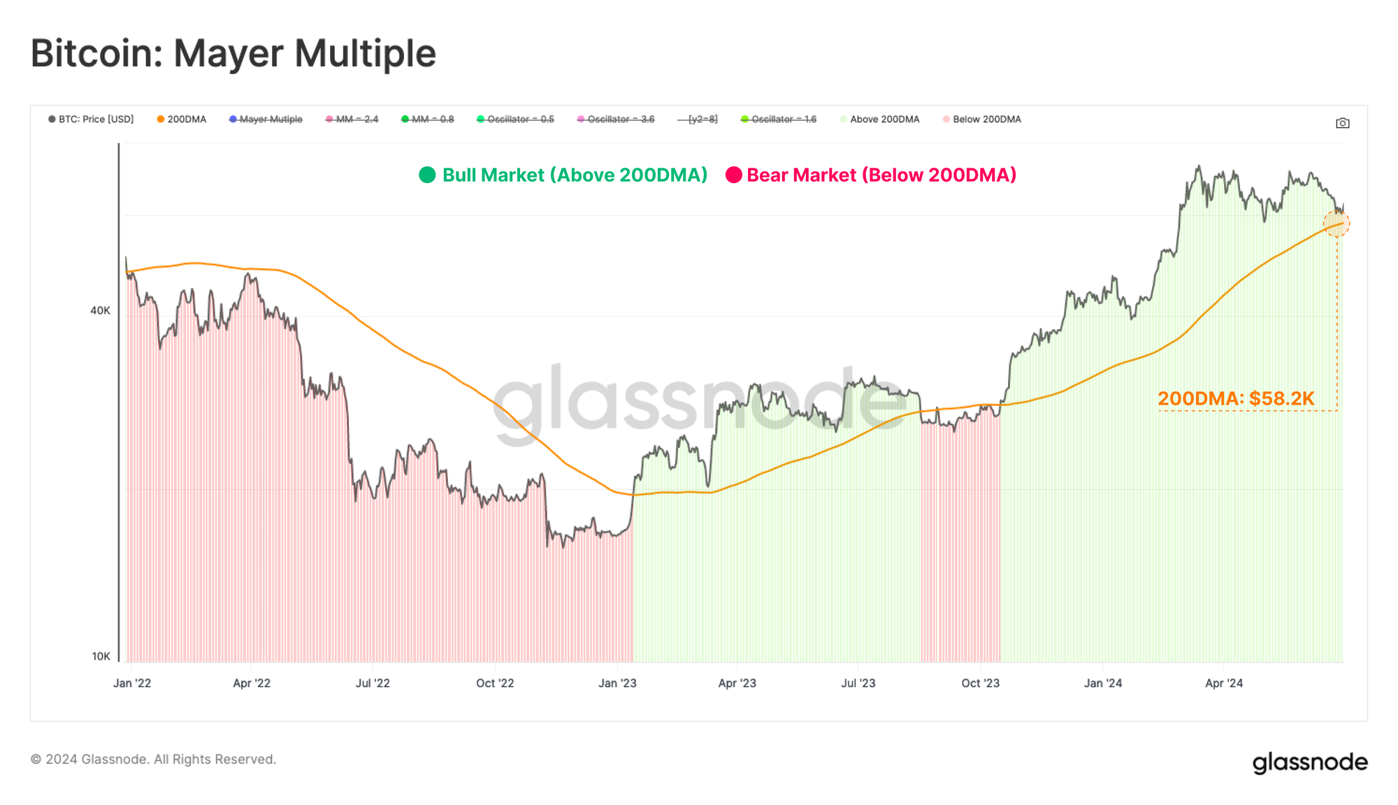 The 200DMA currently resides at a value of $58k, once again providing confluence with on–chain price models.