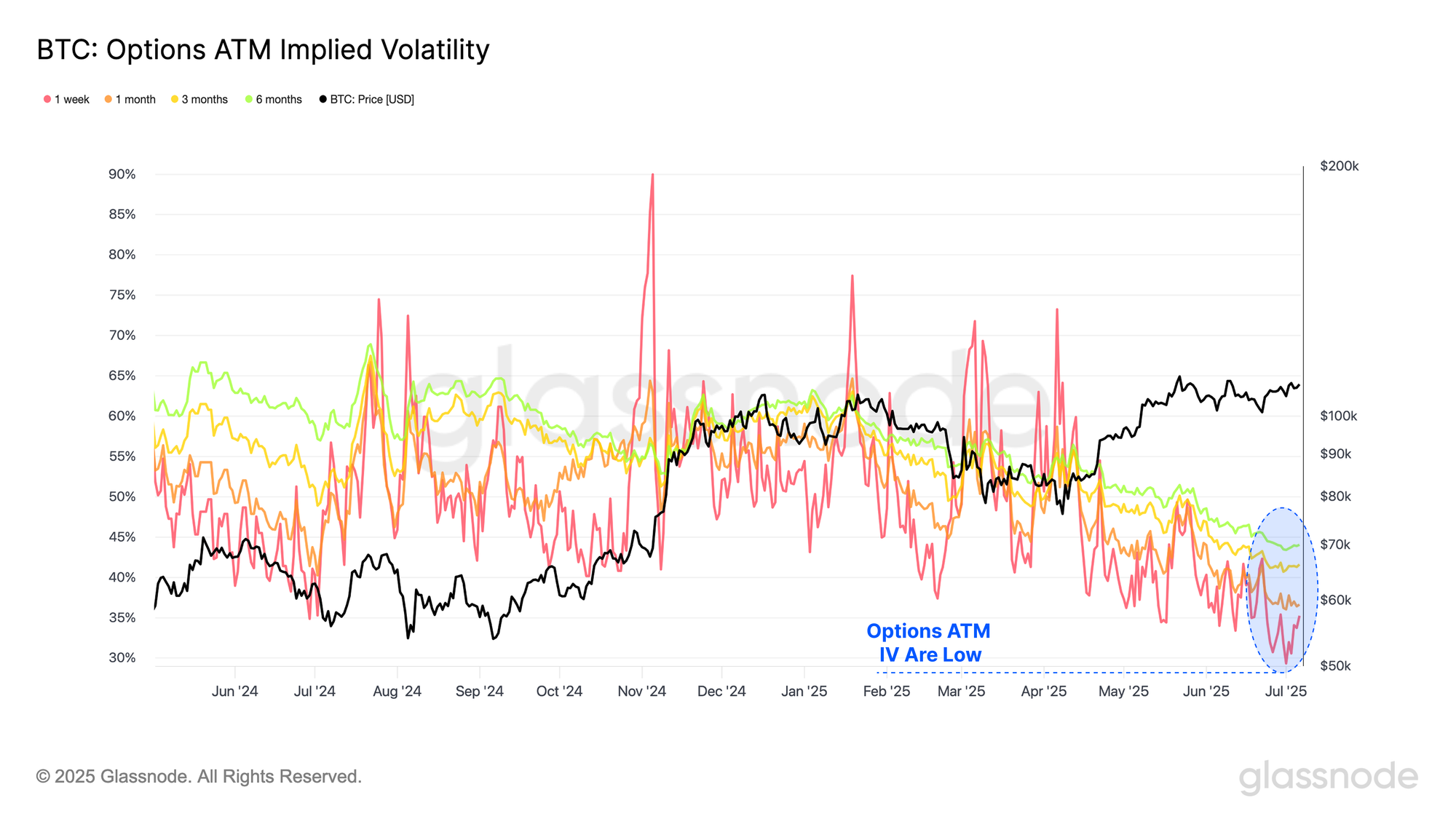 Additionally, At-the-Money Implied Volatility (ATM IV) for options markets are also declining over recent weeks, indicating that options traders are not pricing in a shift toward a high-volatility regime. Historically, subdued volatility expectations like these have often preceded sharp market moves, acting as a contrarian signal.