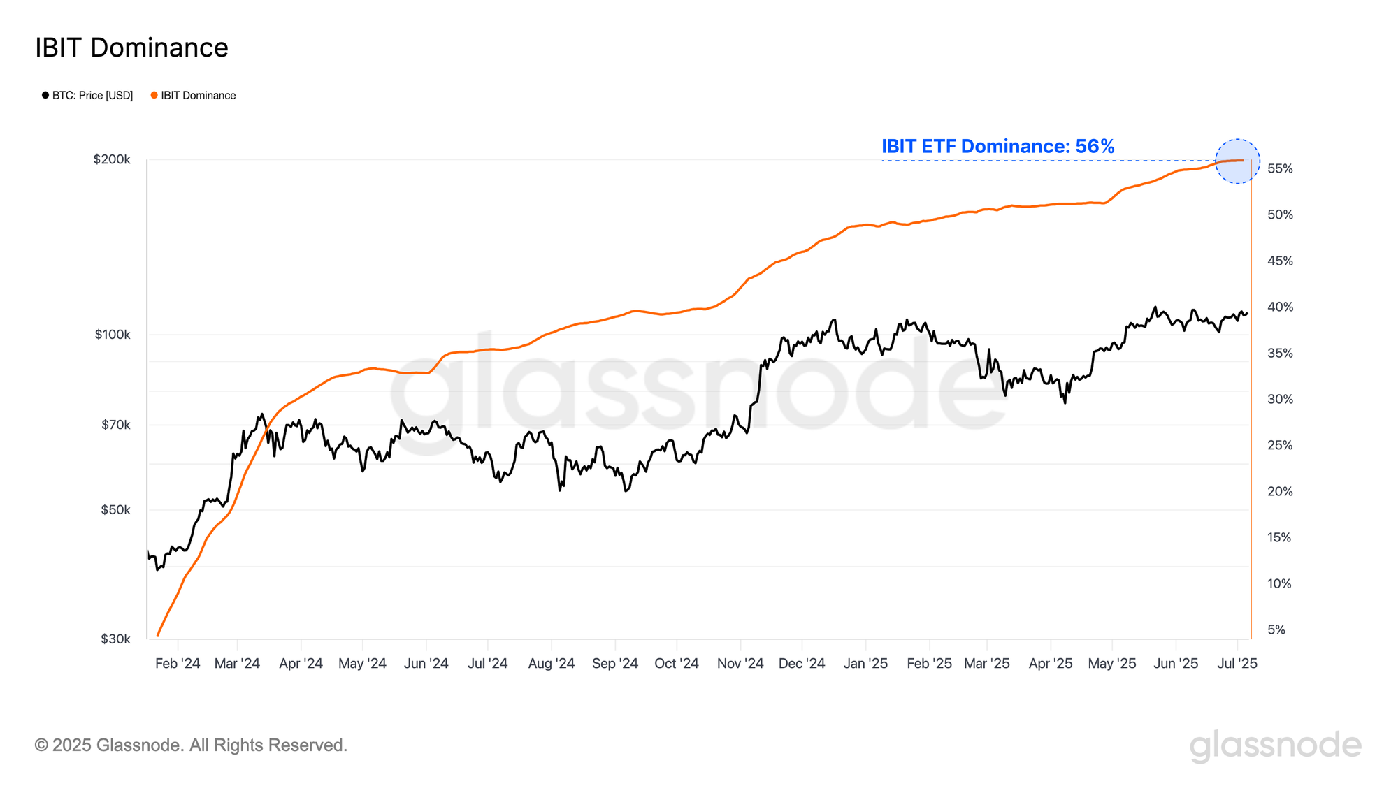 - While ETF inflows have cooled slightly, total AUM across the complex has hit a new ATH of $137B. BlackRock’s IBIT continues to dominate, now representing 55% of the total, with Fidelity and Grayscale following at 16.2% and 14.7%, respectively.