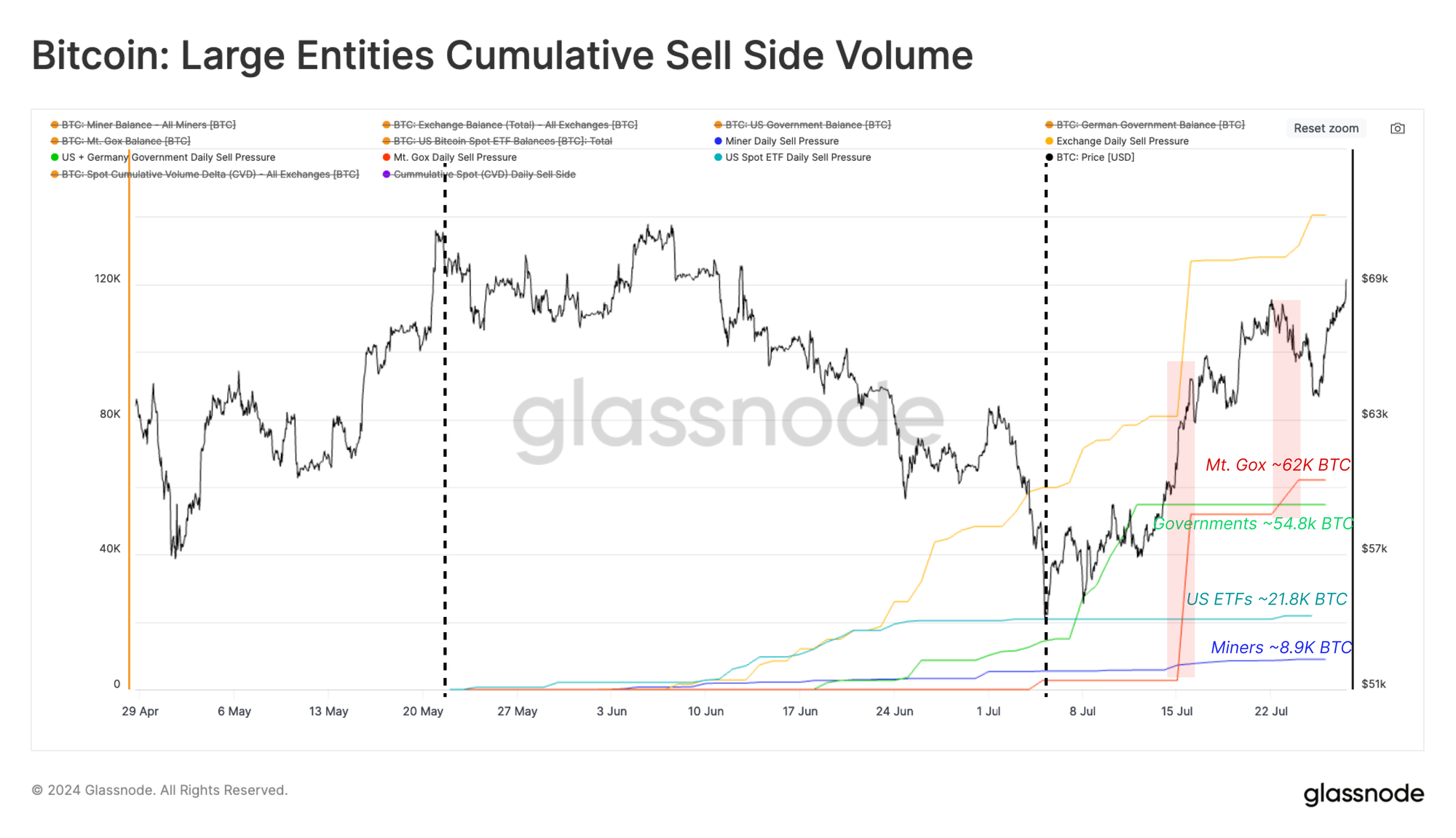 The degree of sell-side pressure by the German Government in late June was tremendous, with over 48k BTC sold over the span of 1-month. Nevertheless, the market absorbed this supply and managed to rally from $53k to over $68k soon after.