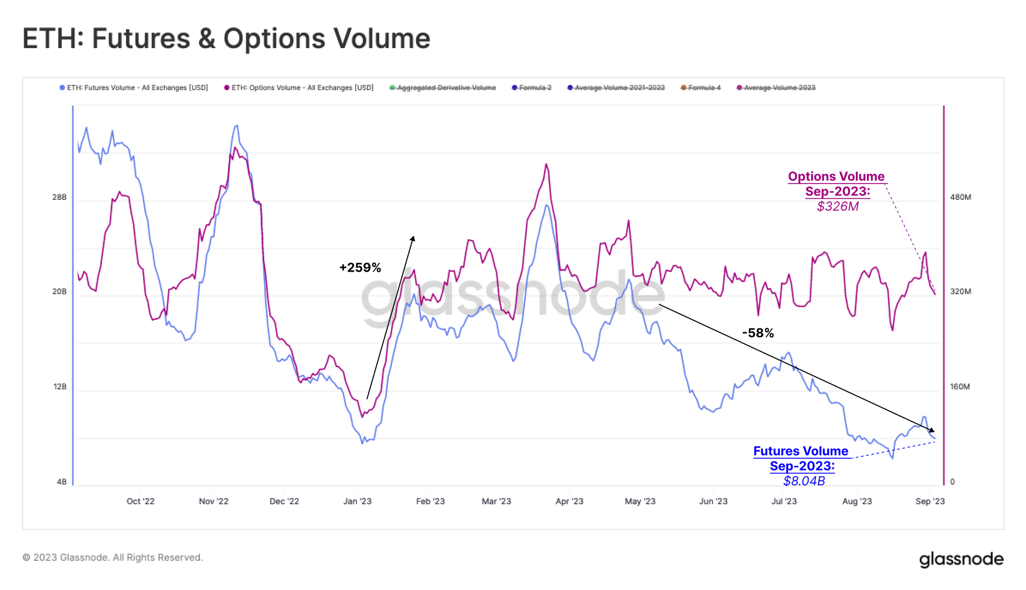 General activity across Ethereum futures and options markets in 2023 is notably below levels seen throughout 2021 and 2022. The average daily trade volume across both markets has declined to just $14.3B/day, which is around half the average volume over the last two years. This week, volume is even lower at $8.3B/day, suggesting liquidity continues to drain from the space.