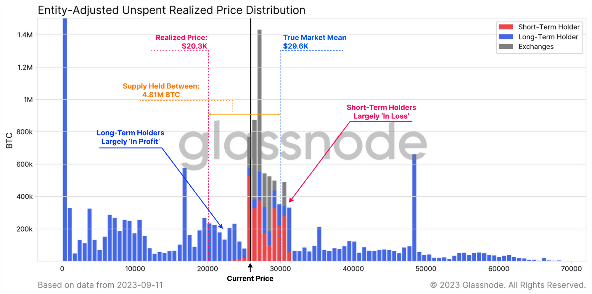 - Short-Term holders on the other hand are teetering on the edge of profitability, with a large majority of their supply acquired above the current price range.