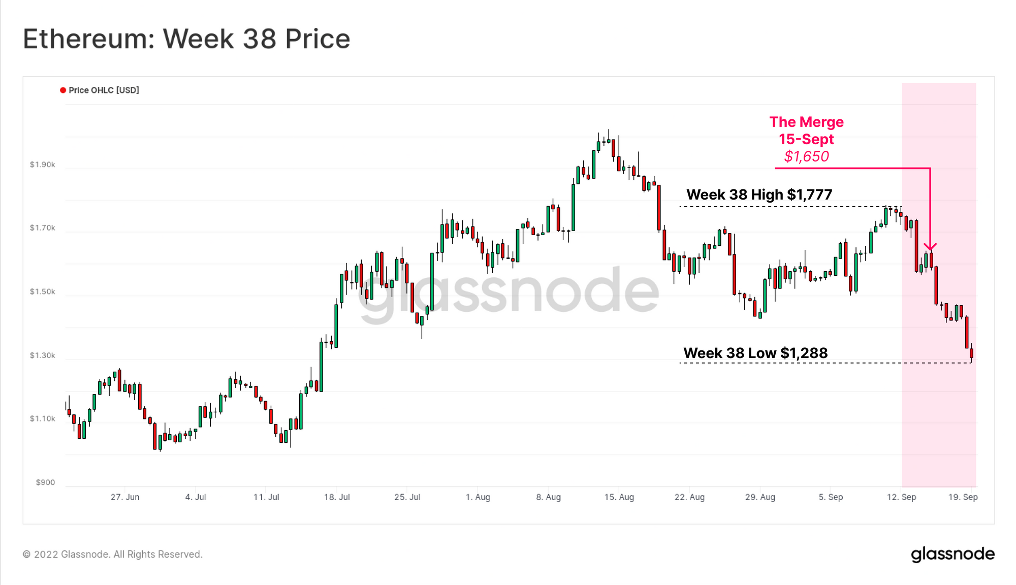 In our WoC 32 Report, we described how market positioning across Futures and Options markets appeared to be well hedged for a sell-the-news style event. Indeed, ETH prices have sold off, from a weekly high of $1,777, to around $1,650 at the time of the Merge, before collapsing to a low of $1,288 on Sunday.