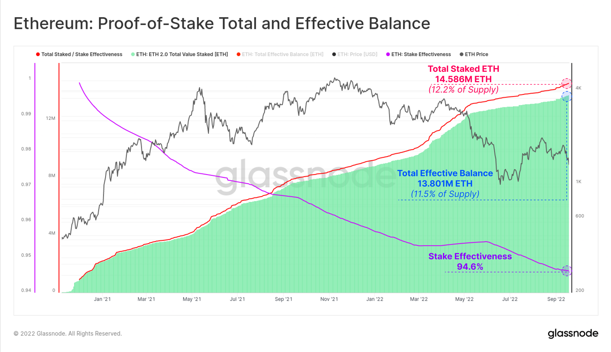 The total Effective Balance is currently at 13.801M ETH, resulting in a Stake Effectiveness rate of 94.6%.