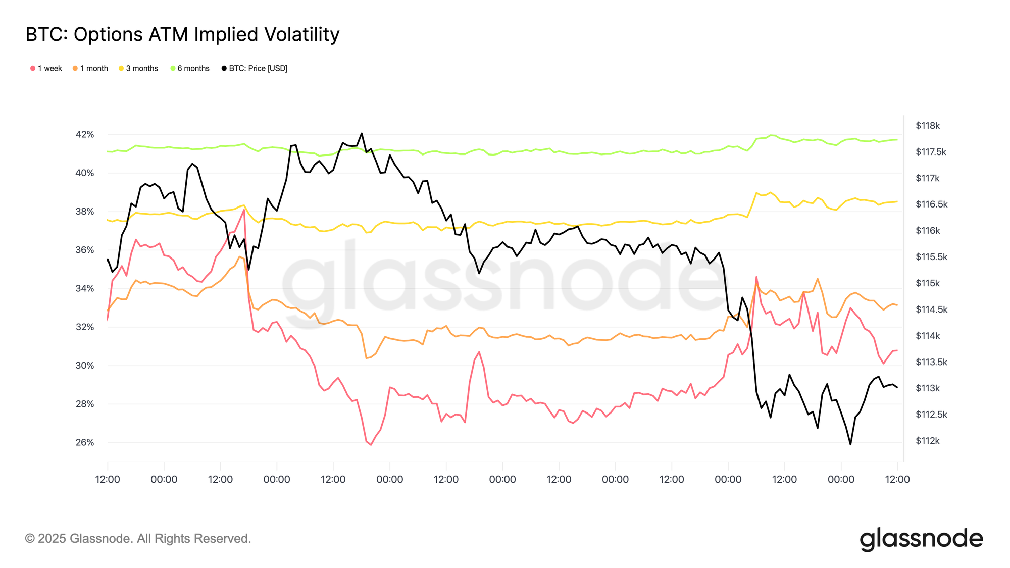 Building on this, the current drawdown from the $124k ATH to $113.7k is just 8%, mild compared to the cycle’s 28% drawdown or the 60% declines of prior cycles. This aligns with the long-term trend of diminishing volatility, both across macro cycles and within intra-cycle phases, resembling the steady advance of 2015–2017, so far without its late-stage blow-off rally.