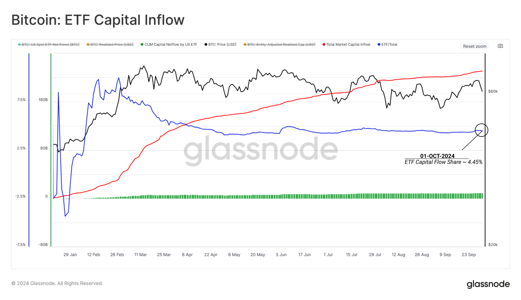 Since early January, the result shows that a non-trivial 4% to 5% of the overall net capital inflow to the Bitcoin market can be associated with coins flowing into US Spot ETFs. Given that this is aligned with their share of the total supply held, we have a reasonable baseline for evaluating their market influence.
