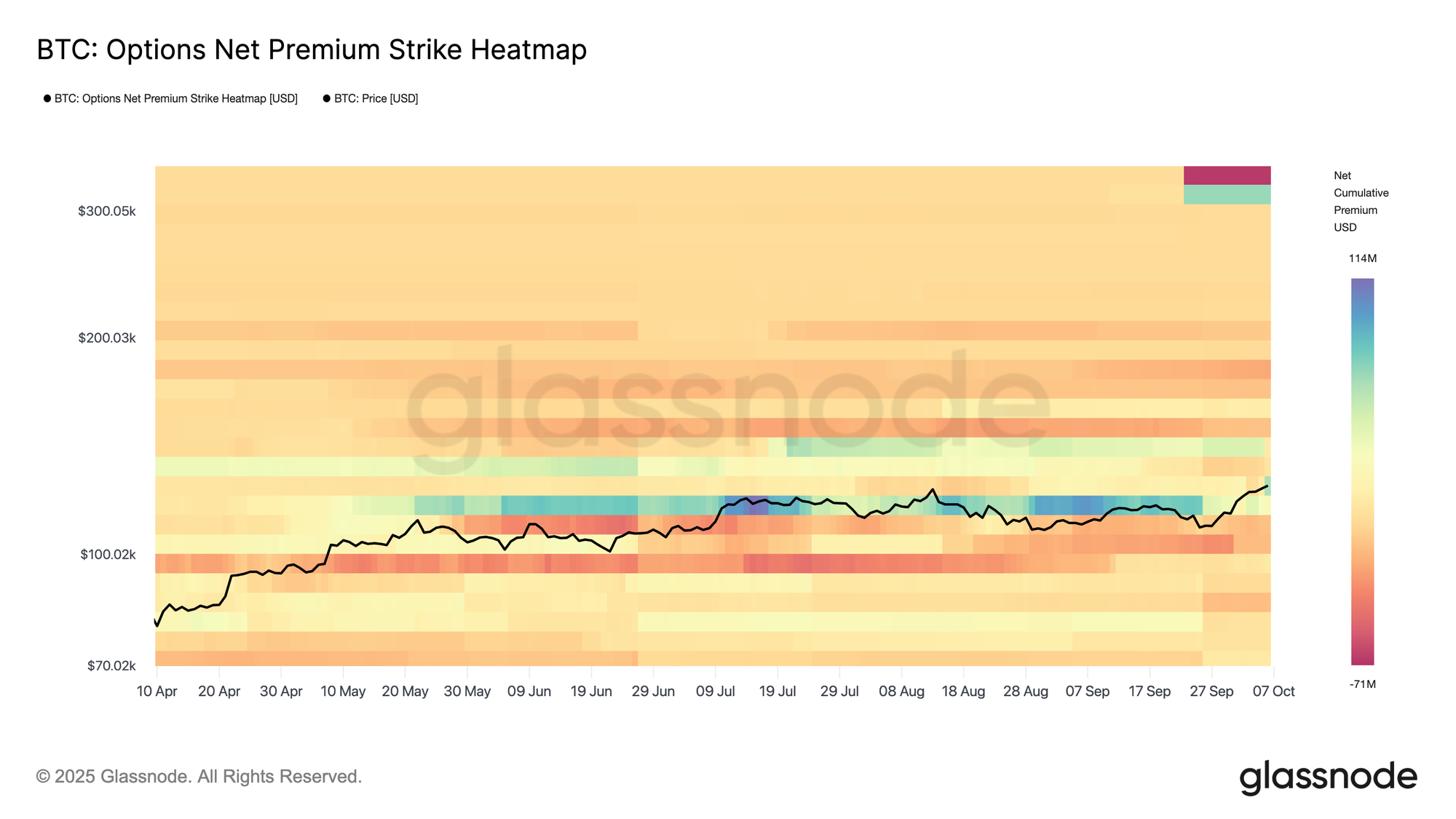 Dealers remain largely long gamma around these strikes, particularly into the month-end expiry, positioning for elevated volatility. This structure suggests potential two-way pressure: long gamma traders may fade rallies to secure profits, while short gamma players could be forced to chase and hedge as prices extend. The result is a setup ripe for amplified swings as the market navigates uncharted territory