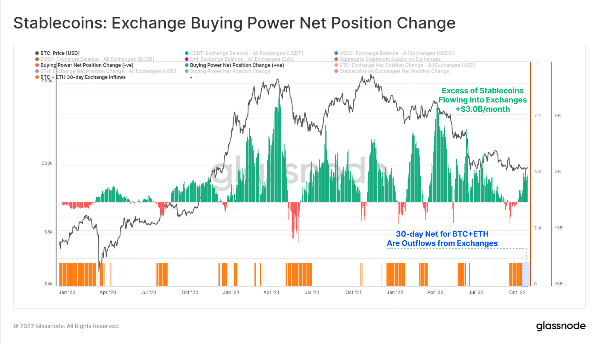 - Exchange BTC balances continue to drain, whilst an excess of $3B/month in stablecoin buying power is flowing in.