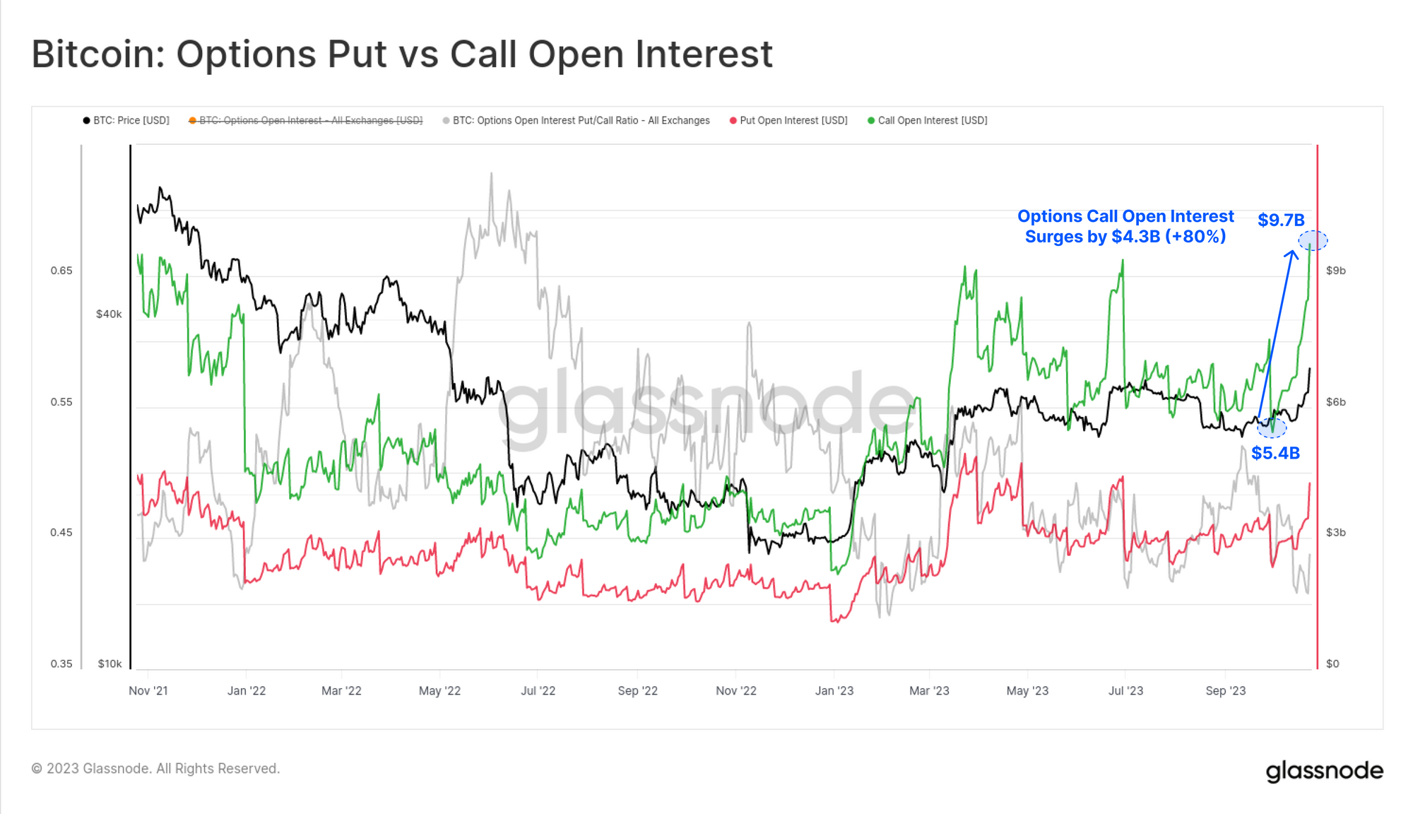 Options markets however continue to be a destination for speculative capital. Open interest in call options has surged by $4.3B, expanding by 80% to reach over $9.7B in total. This suggests that traders and investors continue to use options markets as a preferred instrument for long exposure. This is a relatively new development in Bitcoin market structure, where options markets are now of a comparable scale to futures (see WoC 32).