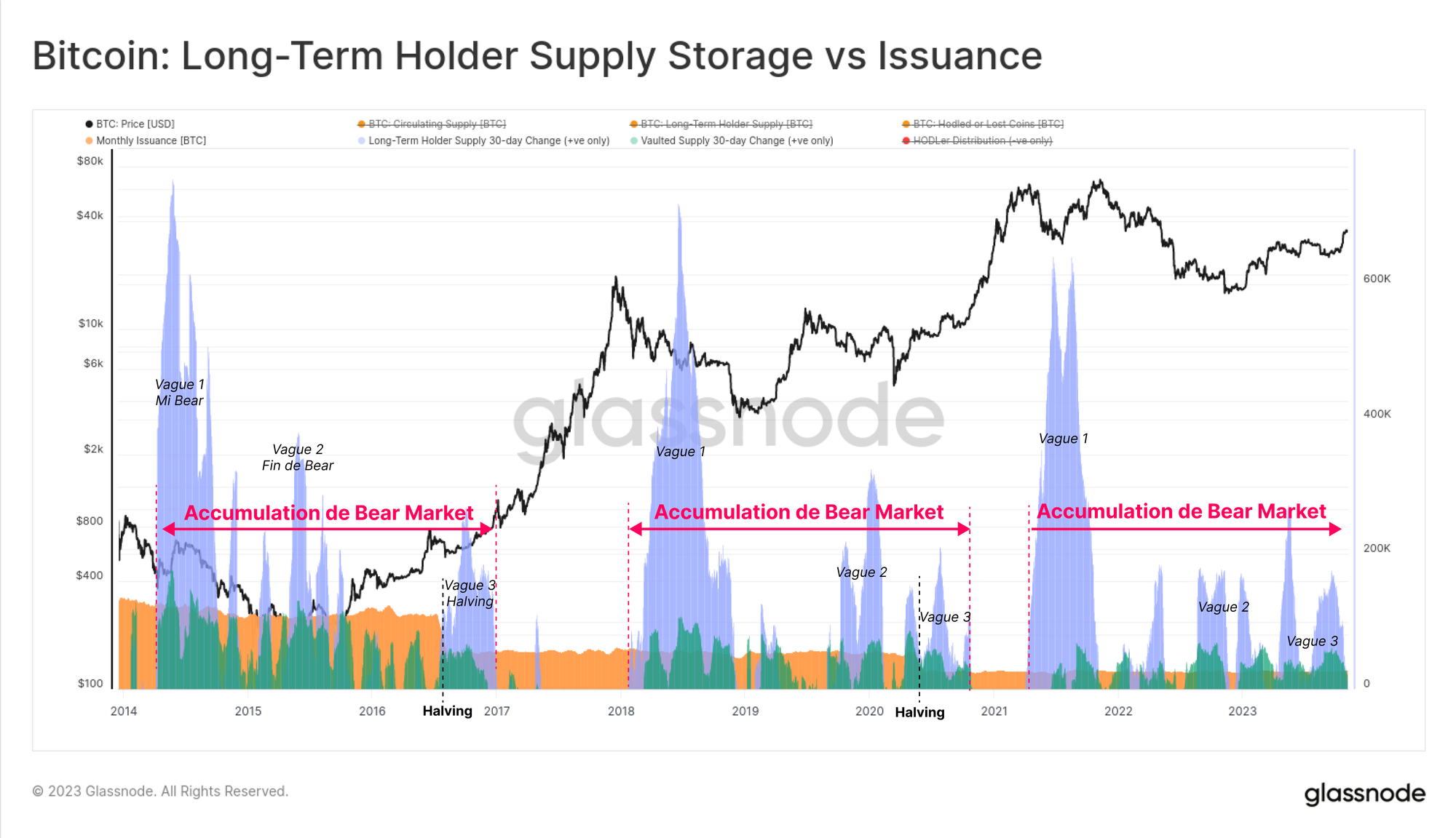 - À l’approche du quatrième halving du Bitcoin, estimée en avril 2024, une tension se forme au sein de l’offre.